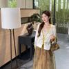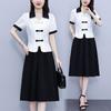 Vestido da Moda Feminino 2025 Verão Novo Estilo Chinês Estilo Nacional Botão Sem Mangas Top e Saia Conjunto de Duas Peças