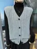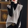 Europeu e Americano Transfronteiriço Tricotado Tricô Cabo Moda Outono e Inverno Novo Colete Gola Alta Literário Retrô Suéter Mulheres Colete Cor Sólida