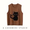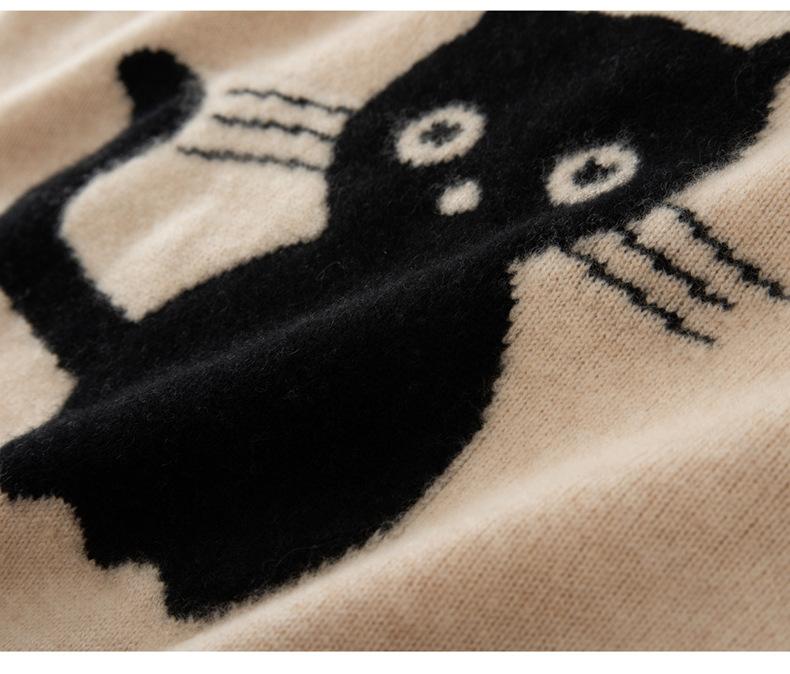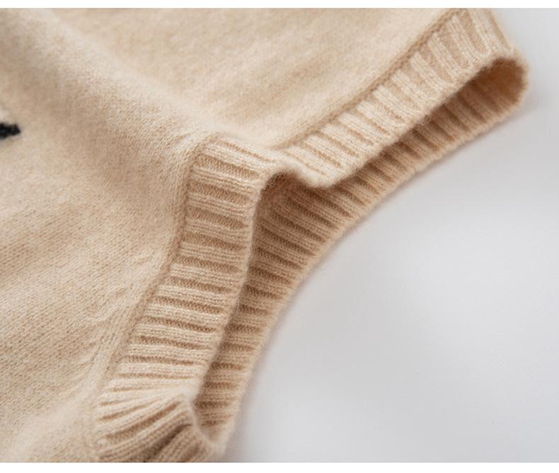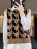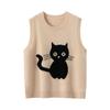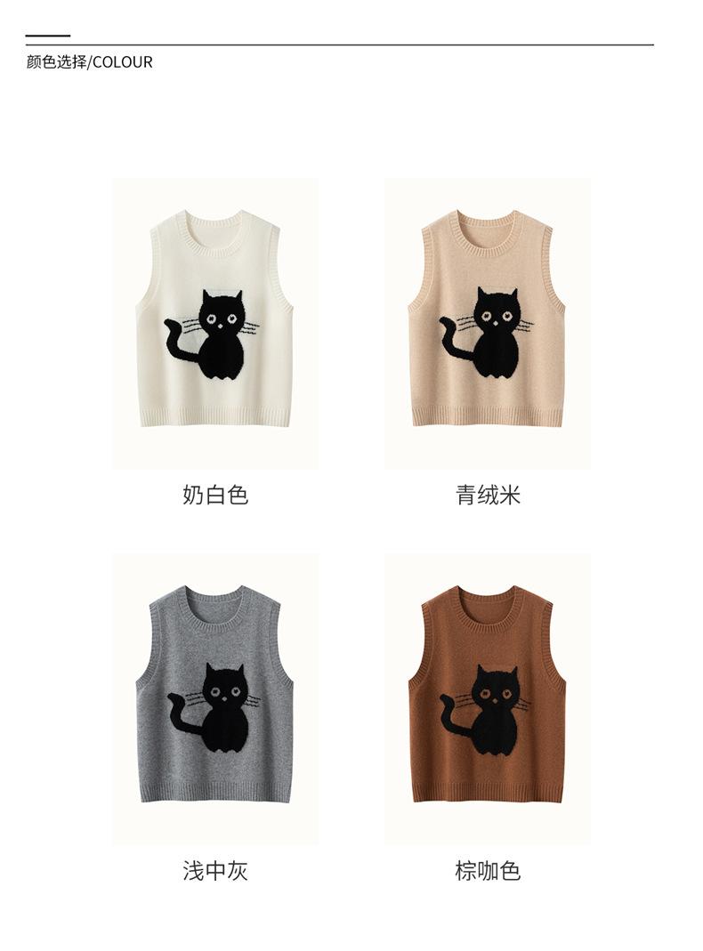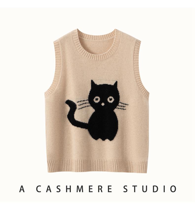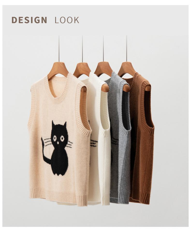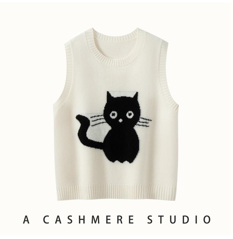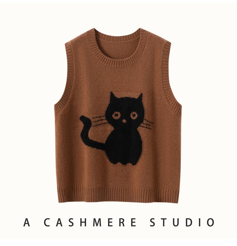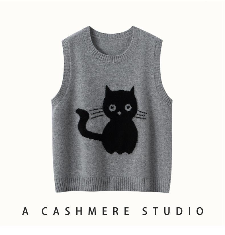 Novo Outono e Inverno Estilo Estrela Estilo Doce Gato Jacquard Suéter de Caxemira Feminino Gola Redonda Sem Mangas Tricotado Lã Colete
