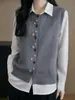 Colete de malha para mulheres 2025 outono novo design coreano nicho camisa camada interna suéter sem mangas ombreira