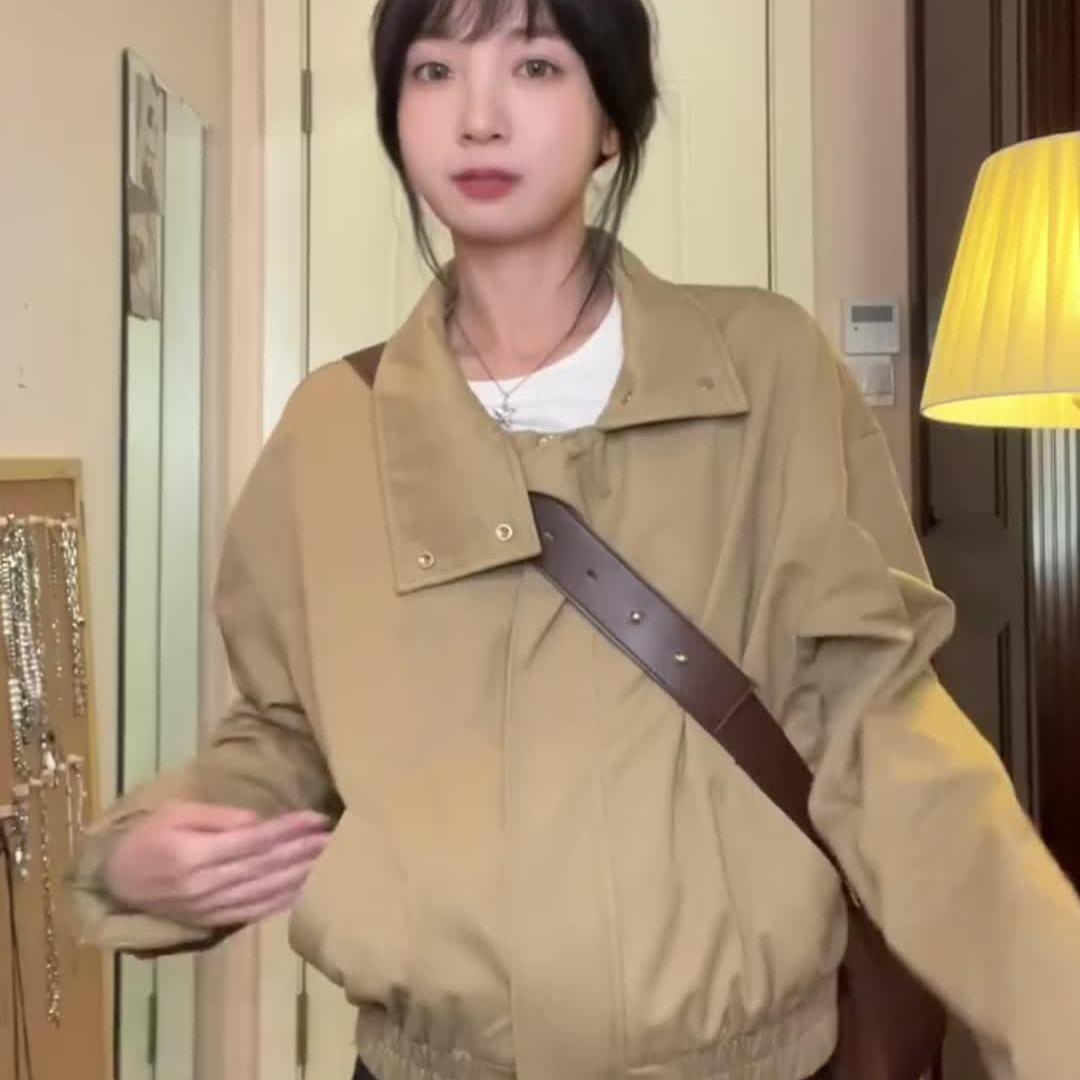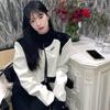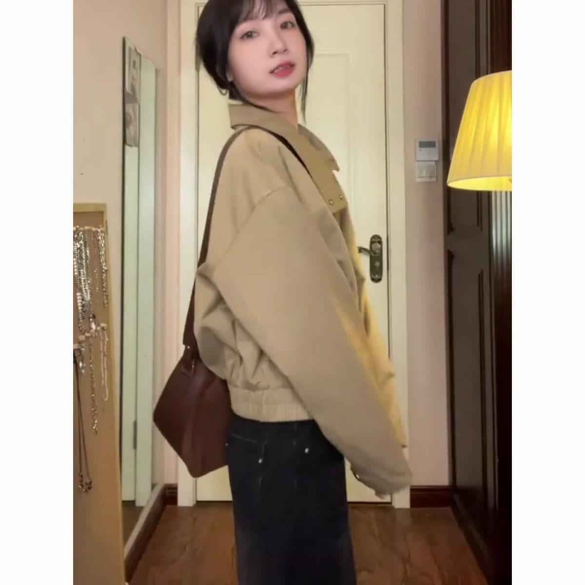Jaqueta Bomber Curta Americana Retrô Patchwork Estilo Chanel Workwear 2025 Primavera Outono Solta Gola Alta Jaqueta Top Feminina