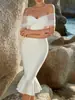 Vestido Francês de Brinde de Casamento Ombro a Ombro Patchwork de Renda Vestido Sereia 2025 Novo Vestido Feminino de Outono