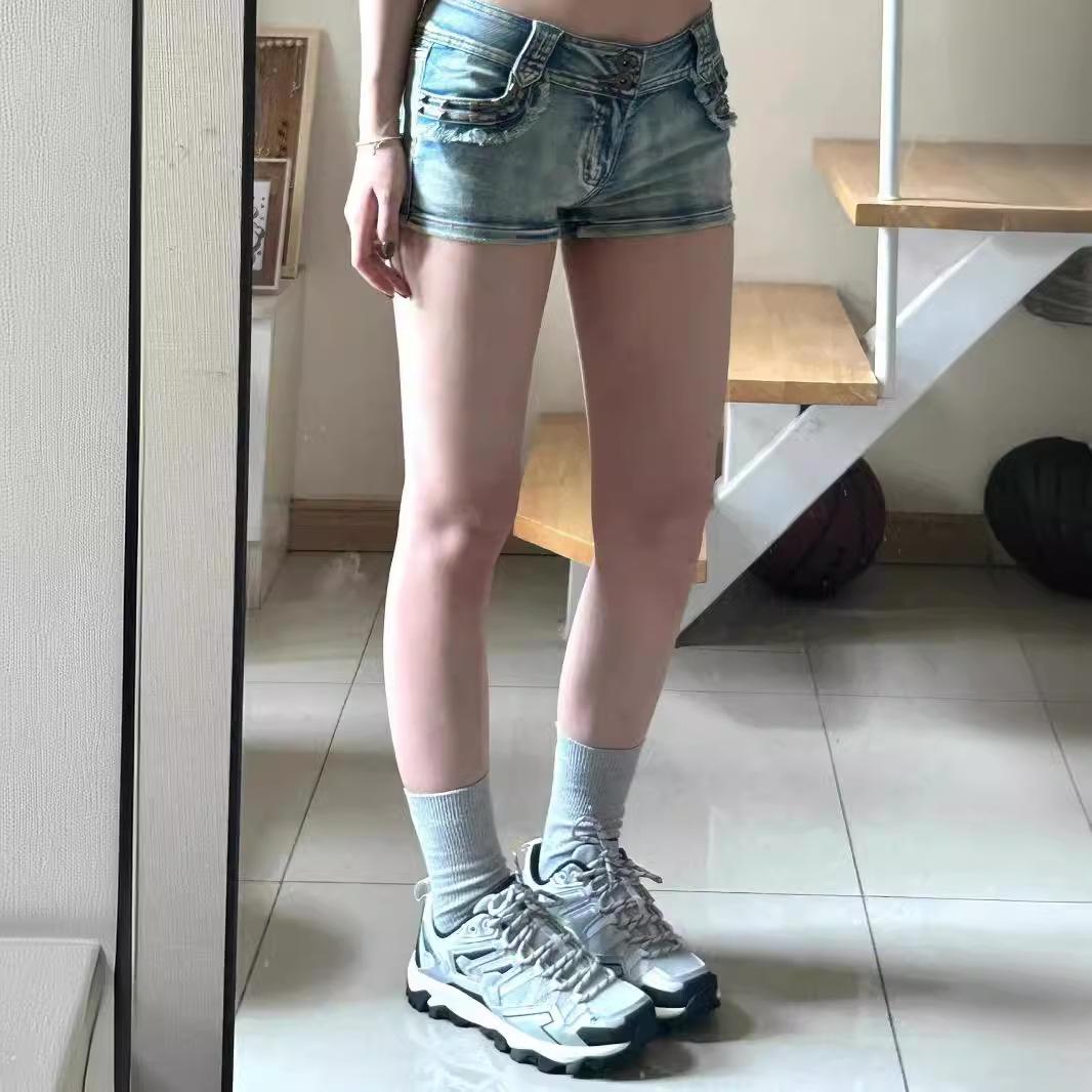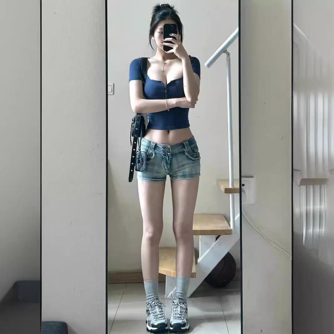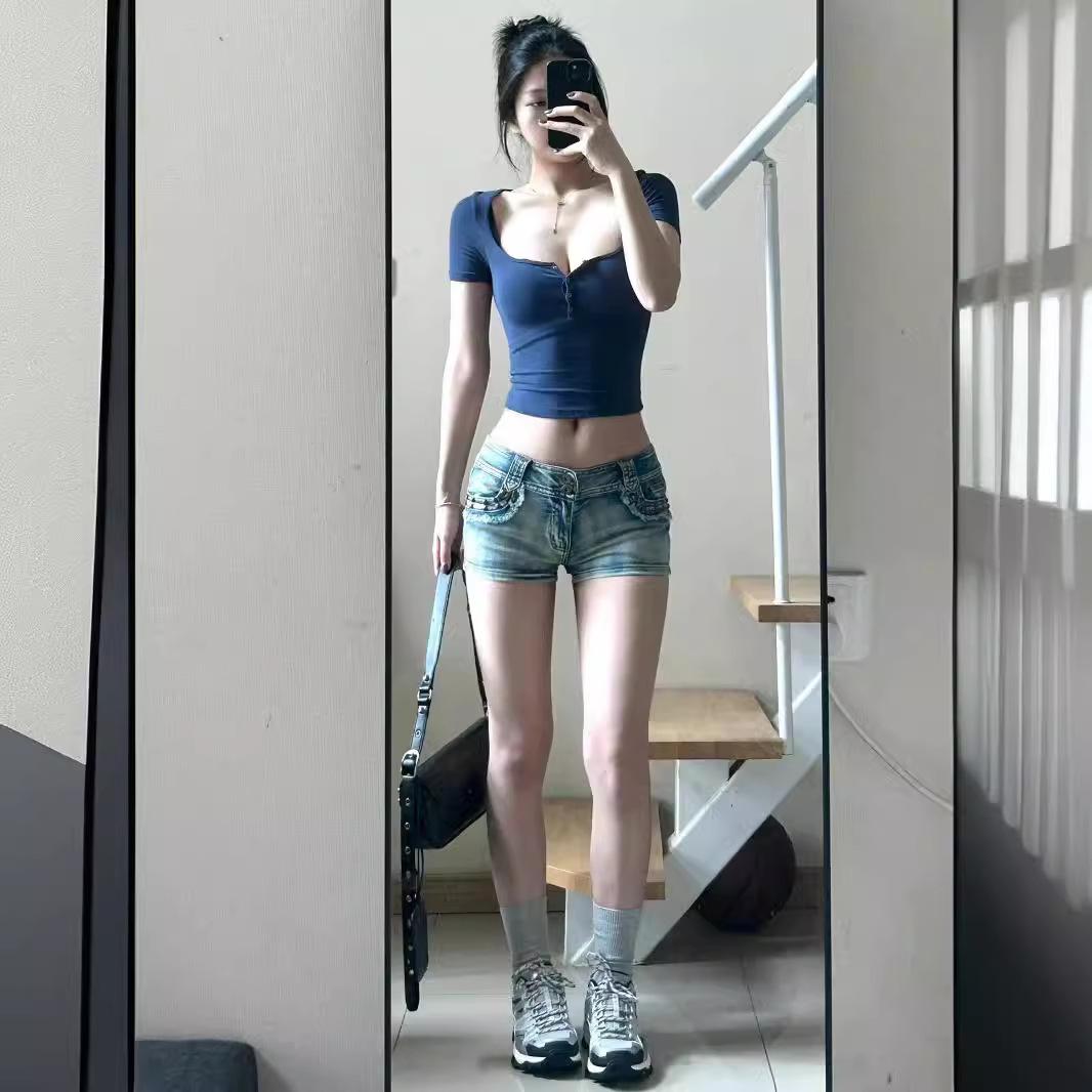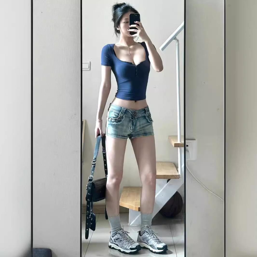 Shorts Jeans Sexy Modeladores para Garotas Quentes 2024 Verão Novo Estilo Americano Retrô Calças de Cintura Baixa Justas no Quadril Hot Pants