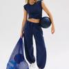 Conjunto Casual de Duas Peças Feminino Europeu e Americano Cor Sólida Top Curto sem Mangas Calças de Moletom com Bolsos Roupa Esportiva