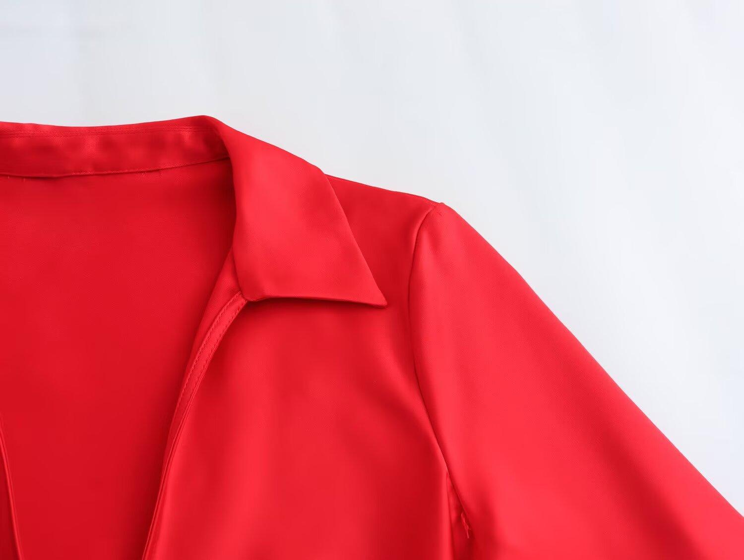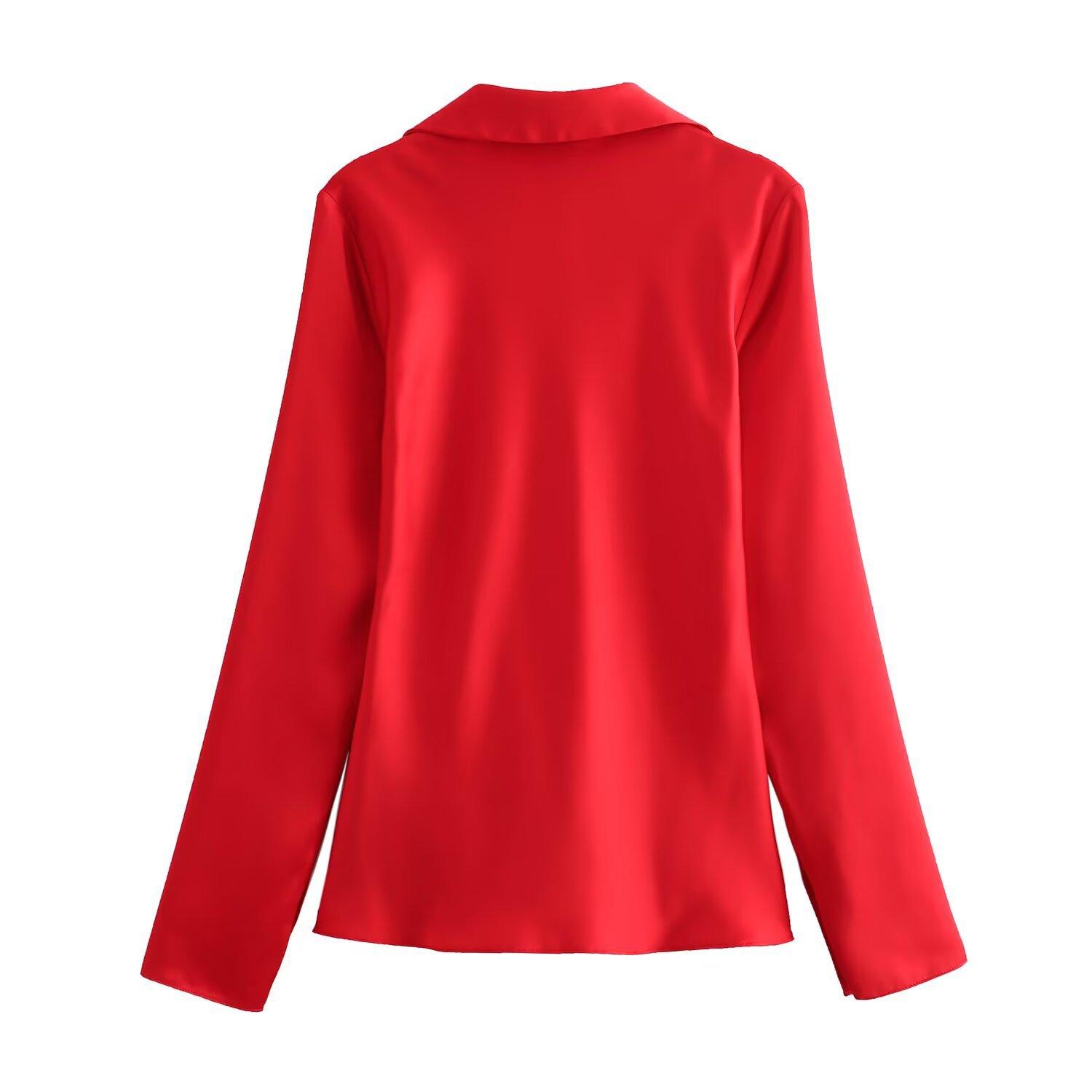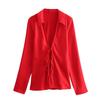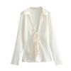 Exportação Transfronteiriça Roupas Femininas Verão 2025 Estilo Europeu e Americano Camisa Top de Lapela Manga Longa com Laço para Mulheres K41224