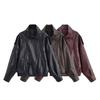 Ins Moda Europeia e Americana Transfronteiriça 2025 Nova Moda Estilosa Amazon Roupas Femininas Atacado Manga Longa Gola Alta Jaqueta de Couro