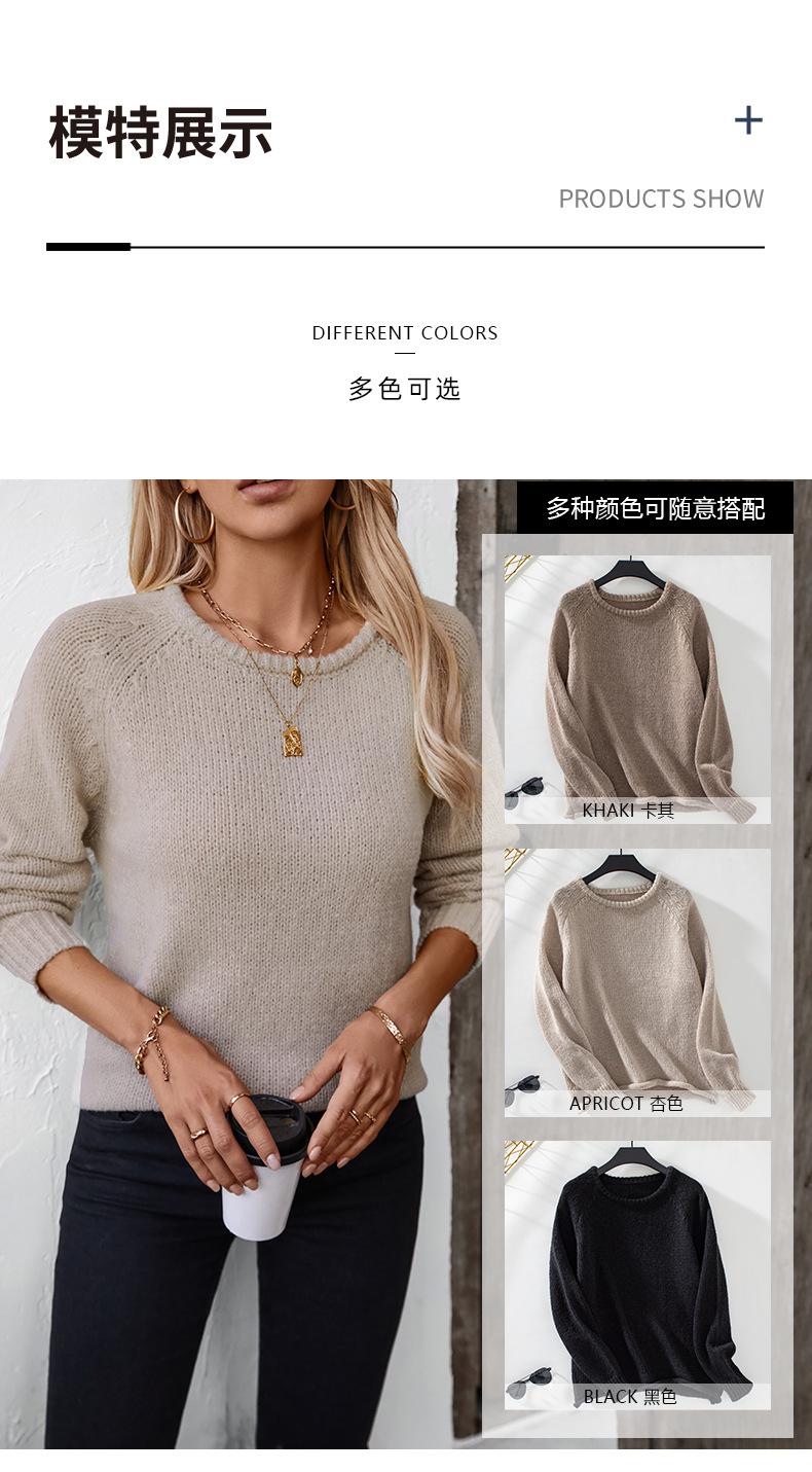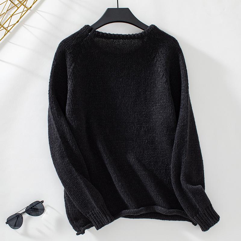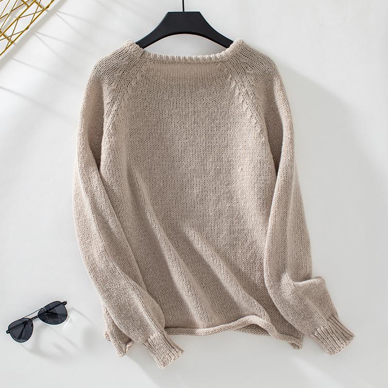 Exportação Transfronteiriça Tricô Cor Pura 2025 Outono e Inverno Novo Amazon Pulôver Solto Tricô Retrô Europeu e Americano para Mulheres