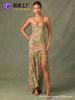 Vestido Longo Elegante Sexy Justo Zhuopin Clothing Customizado para Venda Transfronteiriça com Fenda Lateral e Design de Barra Irregular