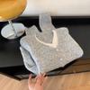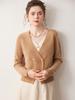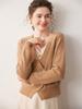 Cardigan feminino de malha de cashmere novo para outono e inverno, falso duas peças, decote em V, estilo preguiçoso, temperamento retrô, casaco
