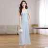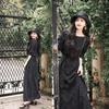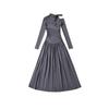 Vestido floral vestido midi 2025 nova estampa manga longa grande roda caimento slim versátil saia longa