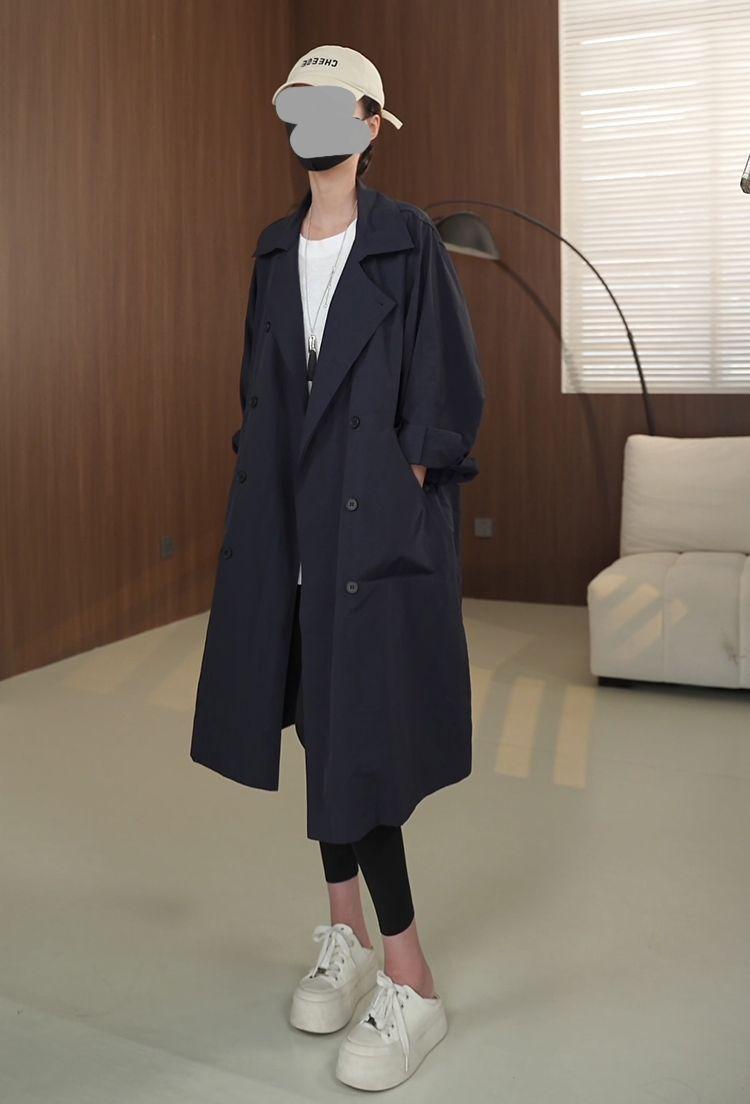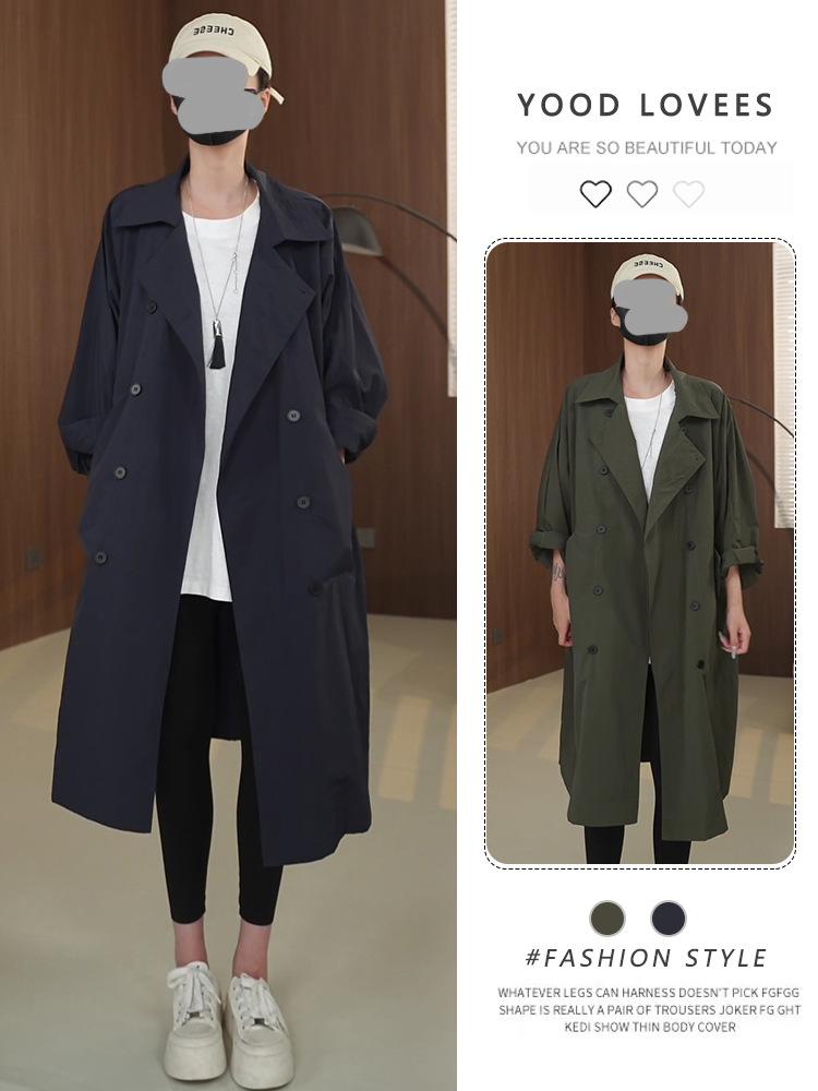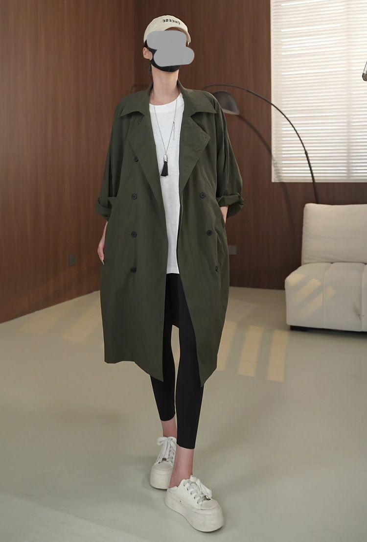 Temperamento sofisticado casaco trench de comprimento médio da moda jaqueta feminina outono novo gola alta solto casual estilo britânico casaco