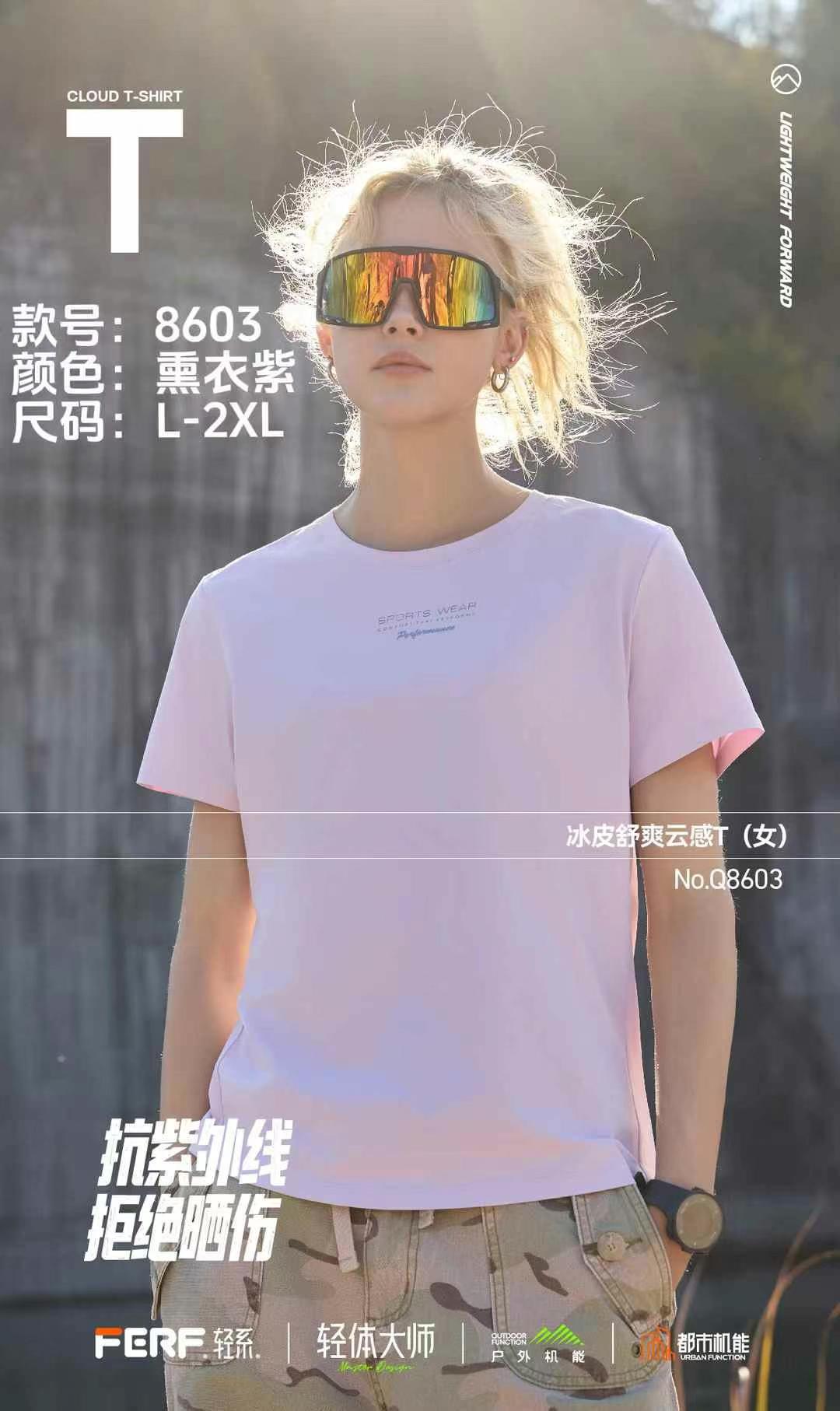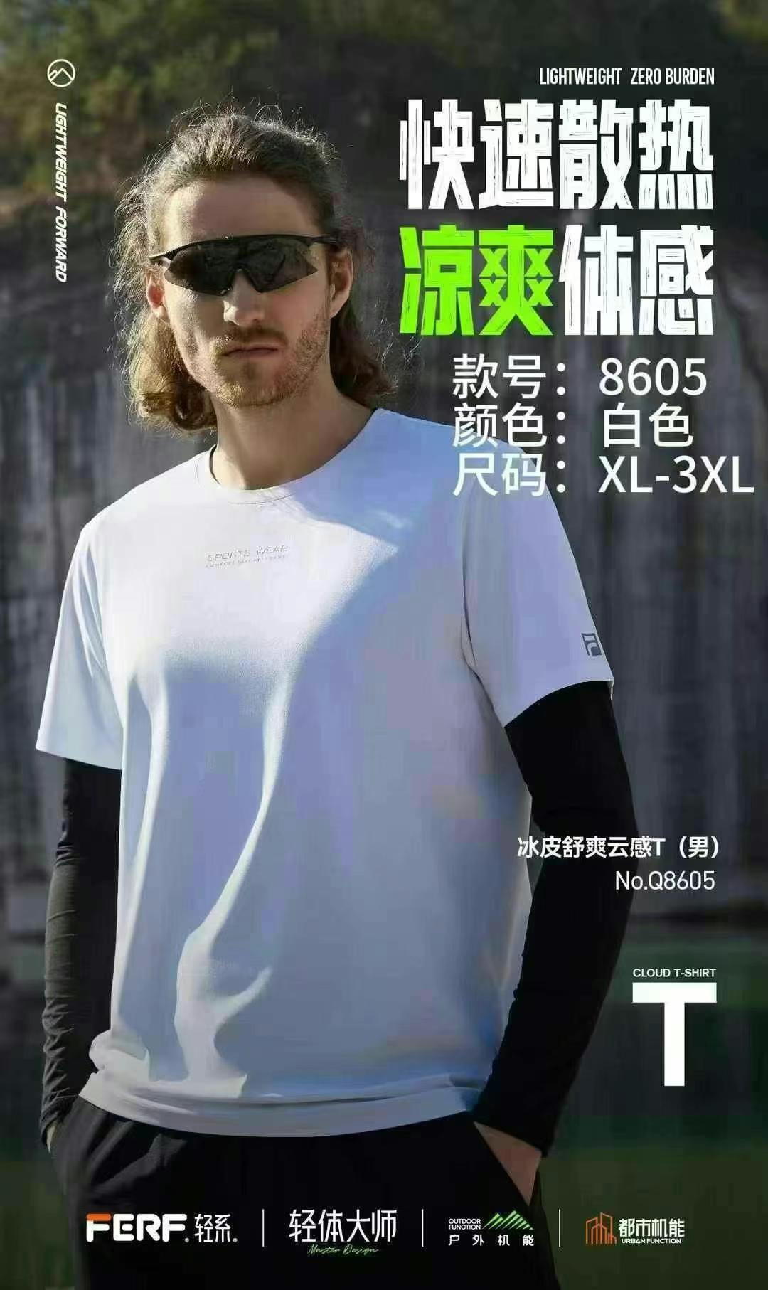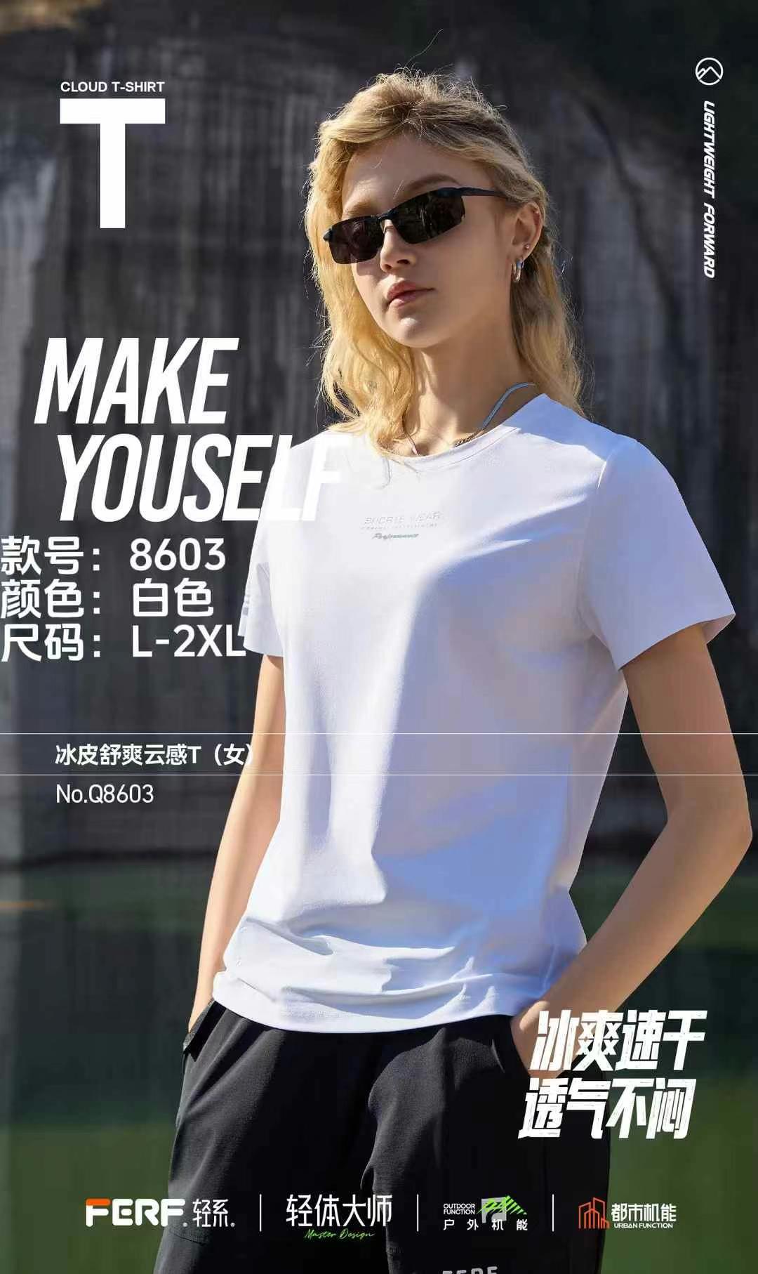 Ferf Light Ice Skin Camiseta Confortável Sensação de Nuvem Feminina Verão Casal Gola Redonda Casual Esportiva Manga Curta