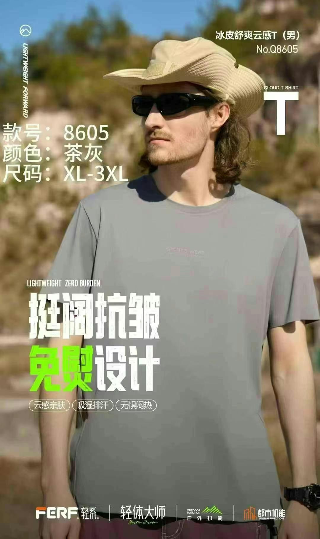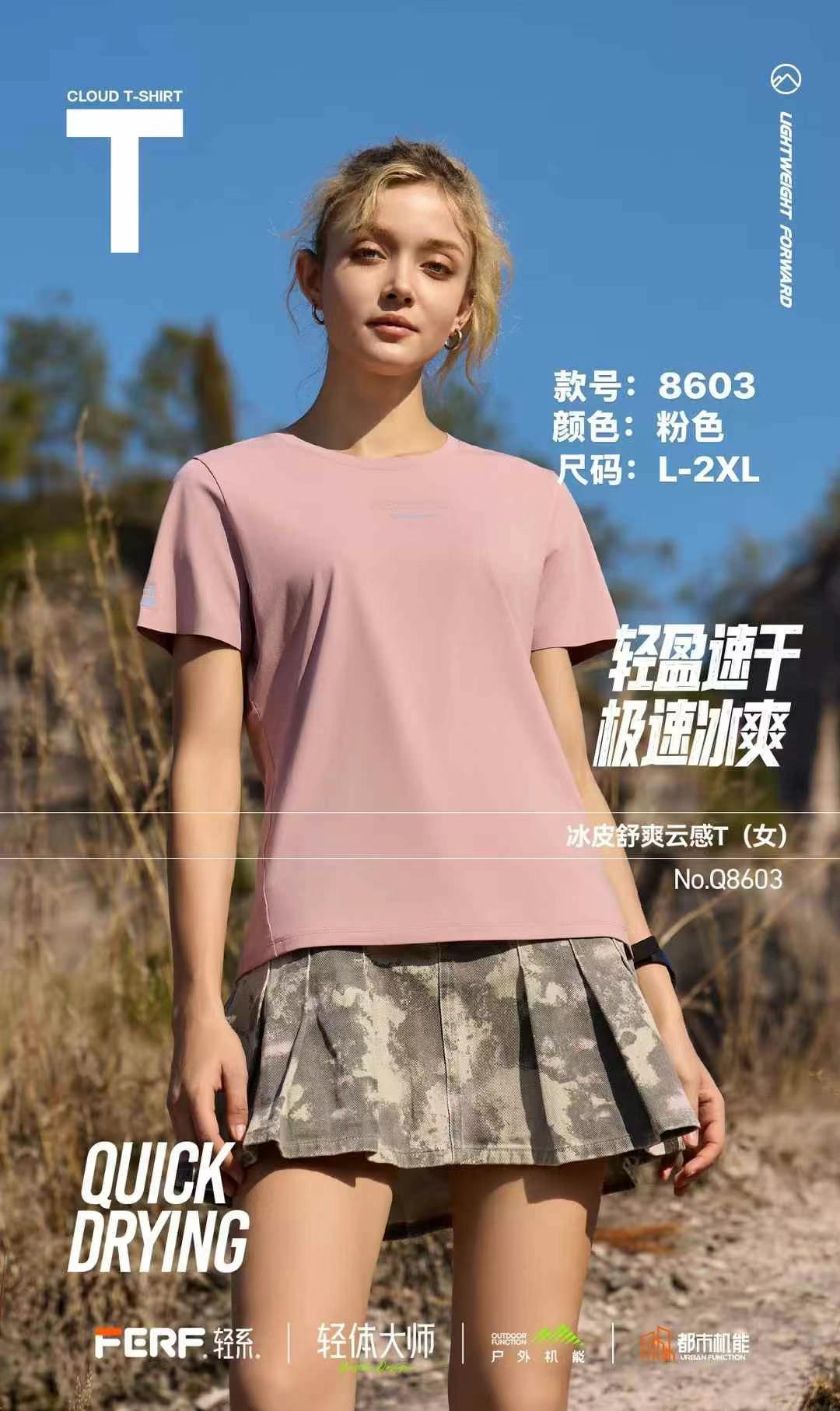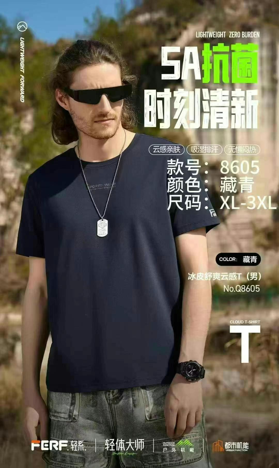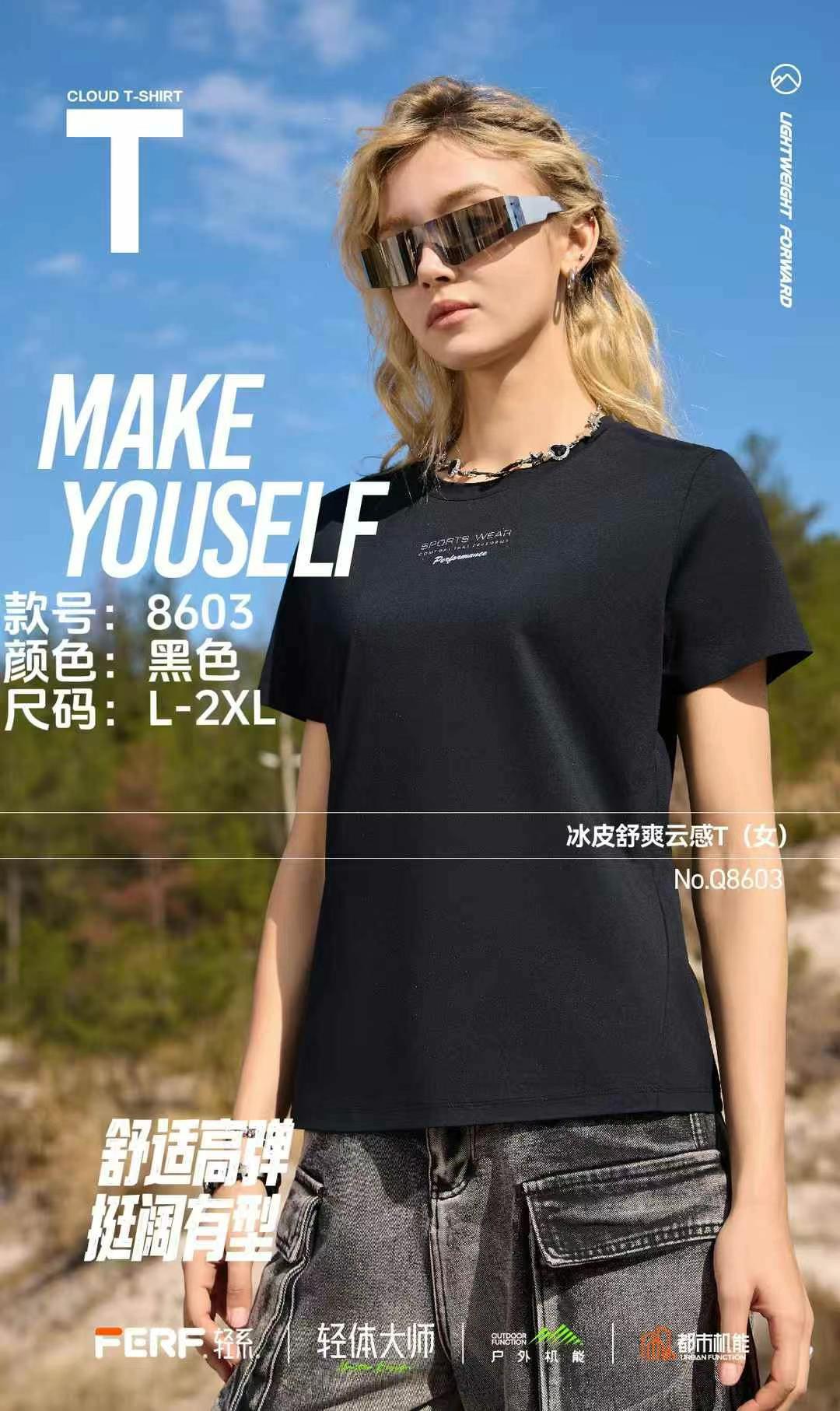 Ferf Light Ice Skin Camiseta Confortável Sensação de Nuvem Feminina Verão Casal Gola Redonda Casual Esportiva Manga Curta