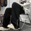 Design de cor sólida senso plissado botão casual calças compridas femininas europeias e americanas retrô soltas perna larga caimento perna reta calças de terno