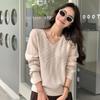 Suéter de Caxemira Slub Outono e Inverno Feminino Básico Temperamento Gola Redonda Cor Sólida Pulôver Seda Tricotado Camisa Base