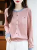 Início do Outono 2025 Novo Cardigan Tricotado de Lã Fina Gola Redonda Manga Longa Feminino Combinação de Cores Solto e Versátil Top