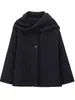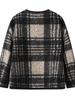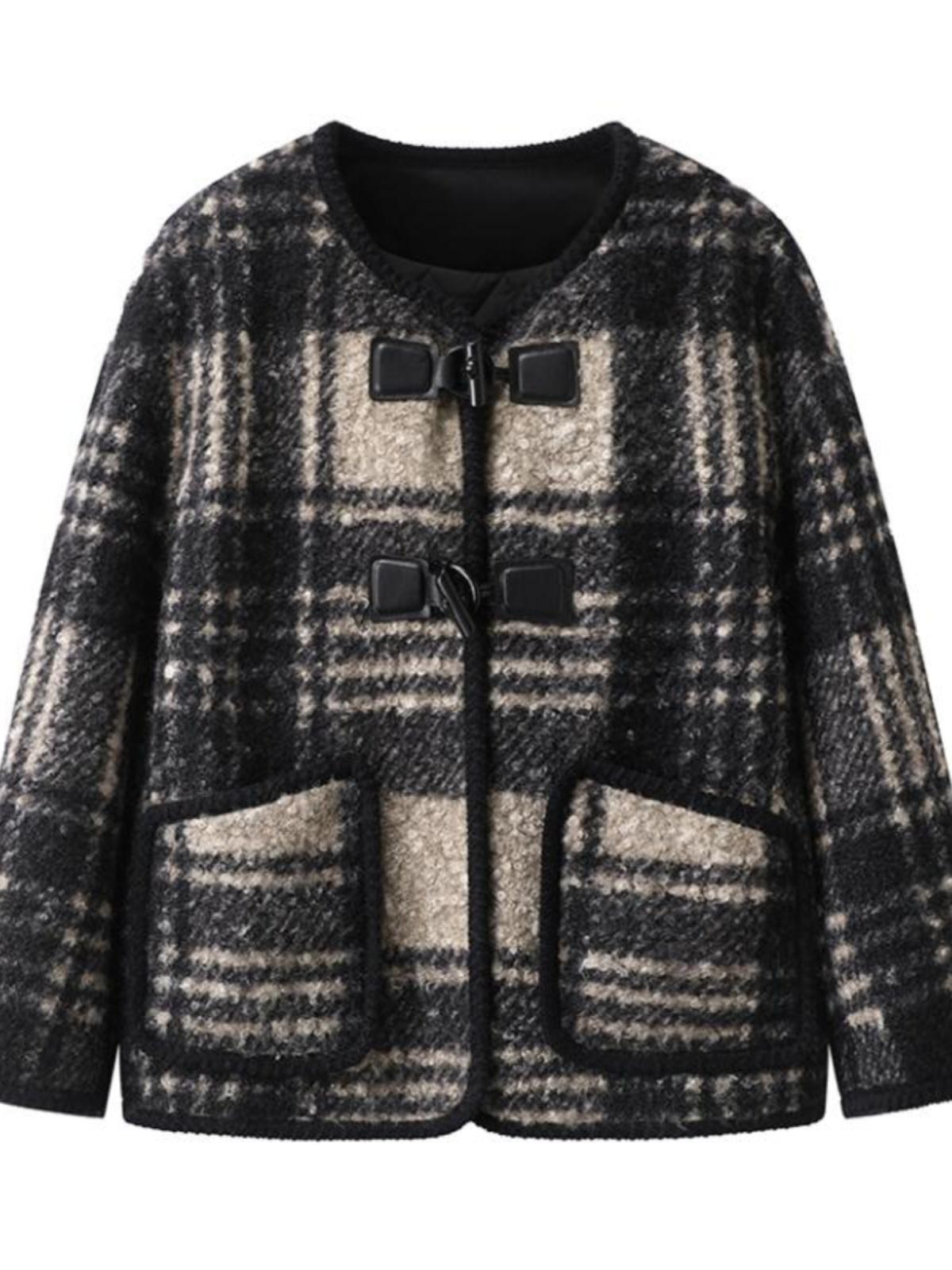 Inverno Novo Temperamento Gola Redonda Xadrez Círculo Casaco de Lã Retrô Botão Toggle Acolchoado Sobretudo de Lã