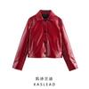 Jaqueta de Couro Feminina Personalizável Transfronteiriça Europa Outono/Inverno 2025 Casaco Feminino Curto de PU com Tachas Assimétrico Slim Fit