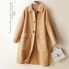 Casaco de lã caxemira dupla face cor aveia para mulheres, comprimento médio, outono/inverno 2025 estilo coreano novo casaco de lã estilo Hepburn