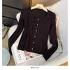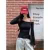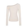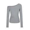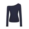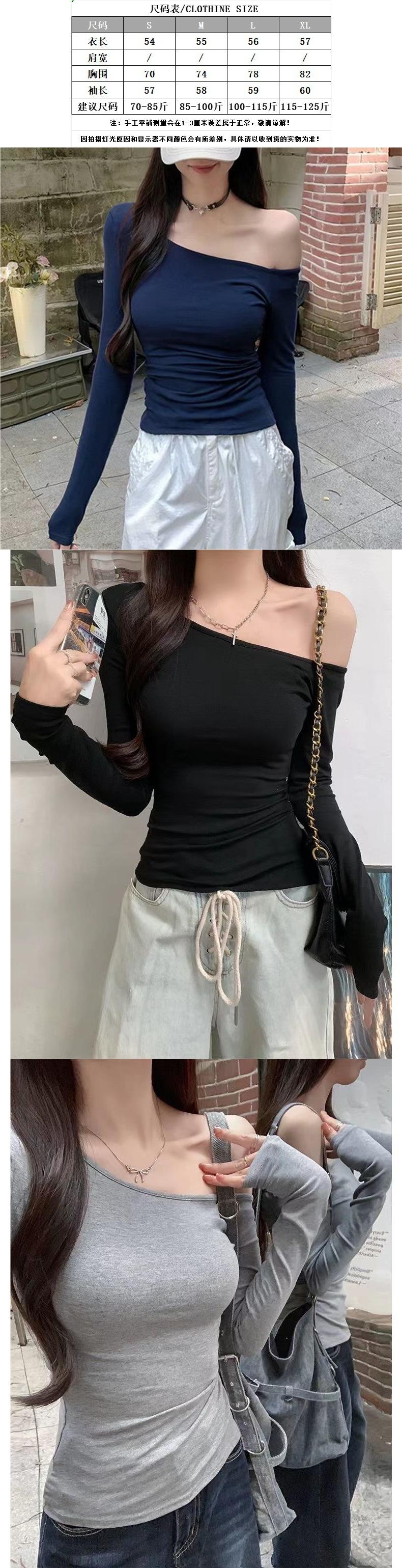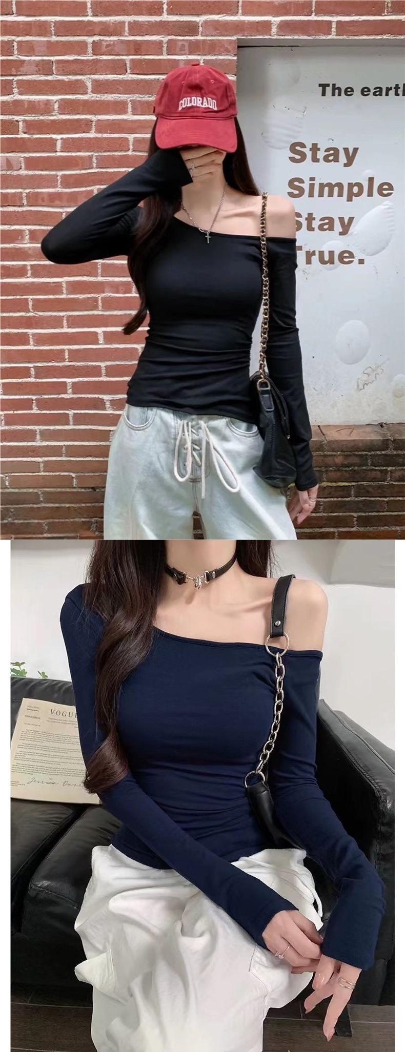 Camiseta feminina de manga comprida com um ombro só, estilo Hong Kong ins, cor sólida, outono, primavera, modelagem slim, emagrecedora, chique de alta qualidade, top versátil, tendência