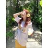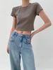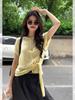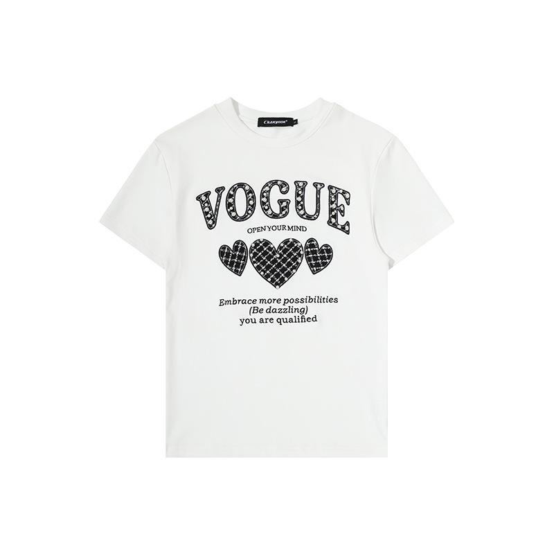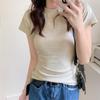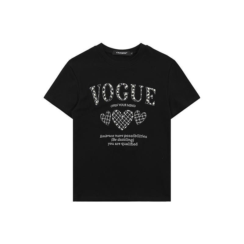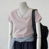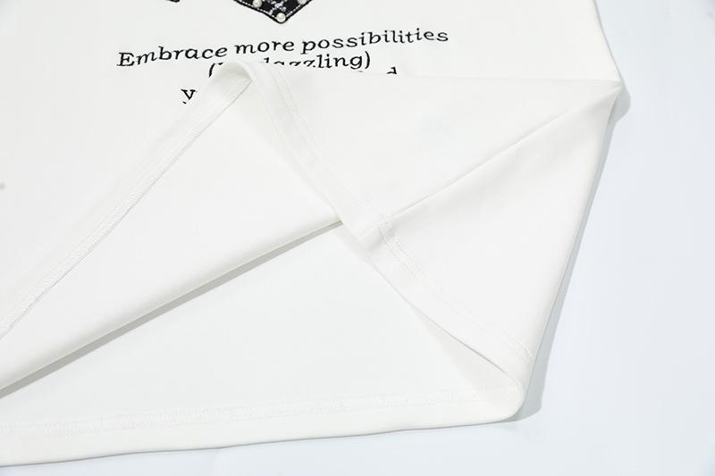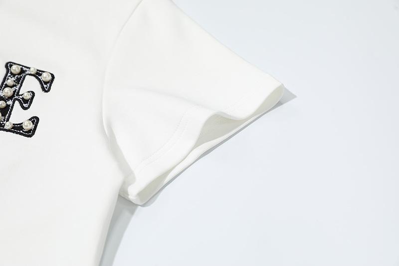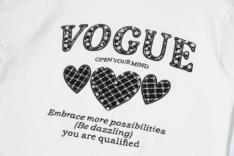 Camiseta de Manga Curta com Bordado de Coração de Contas para Garota Quente Ombro Direito Estilo Bm Cintura Versátil Top Casual Preguiçoso Verão