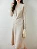 Saia de Lã Feminina Design Transpassado Suéter Conjunto de Duas Peças Nicho Tricotado Manga Longa Saia Rabo de Peixe Tendência