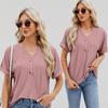 Roupa feminina transfronteiriça 2025 verão nova moda casual solta emagrecedora manga larga decote V camisa top feminino 2340939