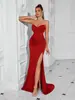 Moda Comércio Exterior Vestuário Feminino Transfronteiriço Novo Vestido de Noite com Bainha Larga, Vestido Longo Sexy Sem Alças de Cor Sólida