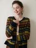 Cardigan de Cashmere Jacquard Fair Isle Feminino Gola Redonda Suéter de Tricô Jaqueta Outono e Inverno Solto Top de Lã em Blocos de Cor
