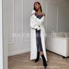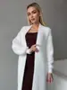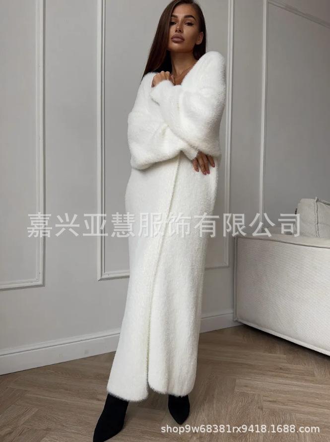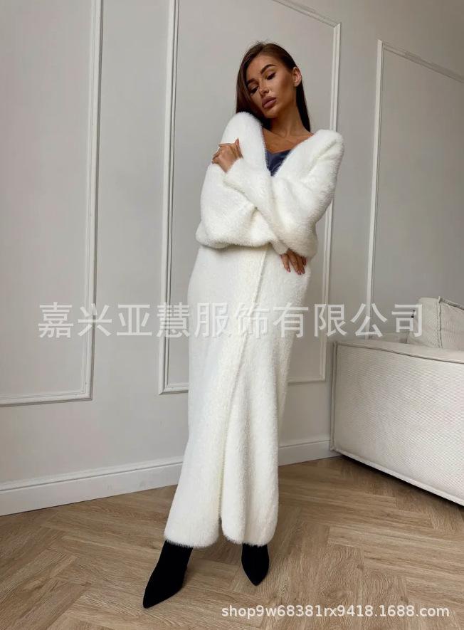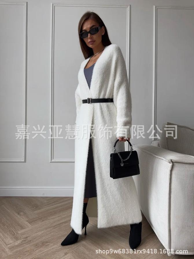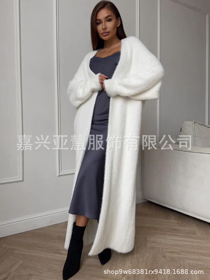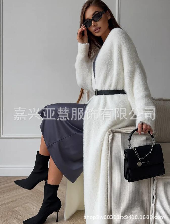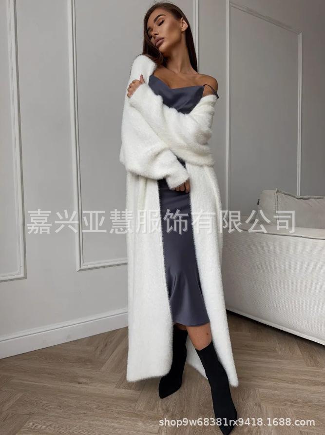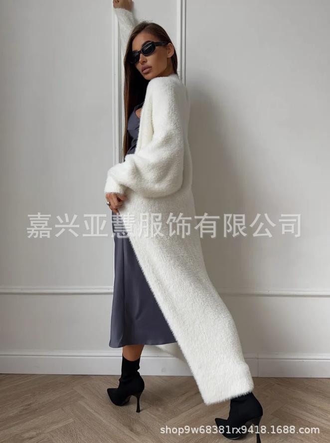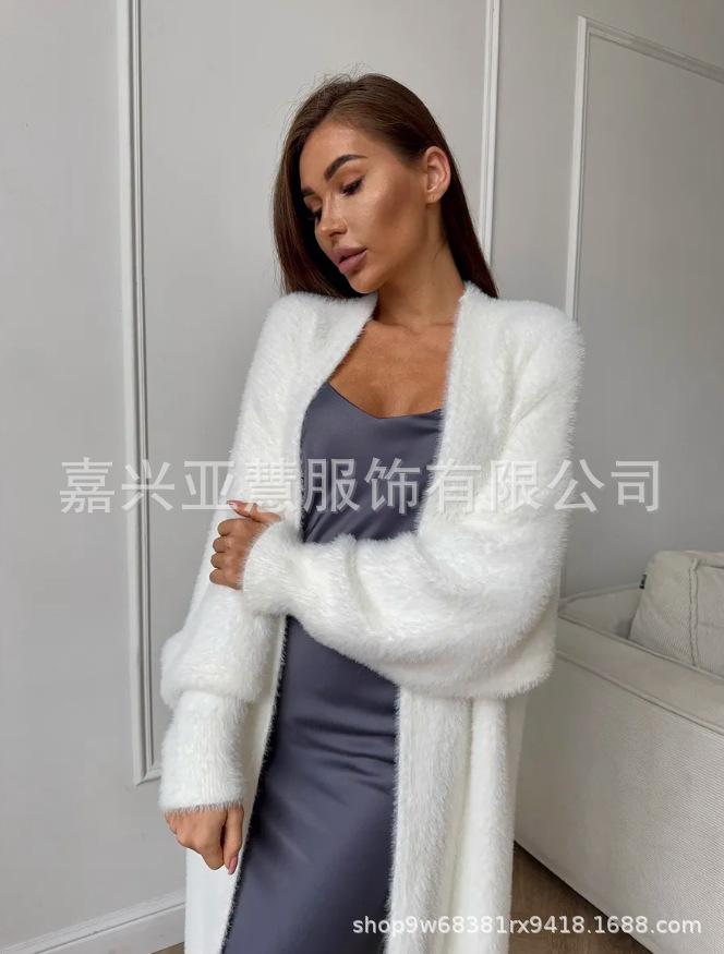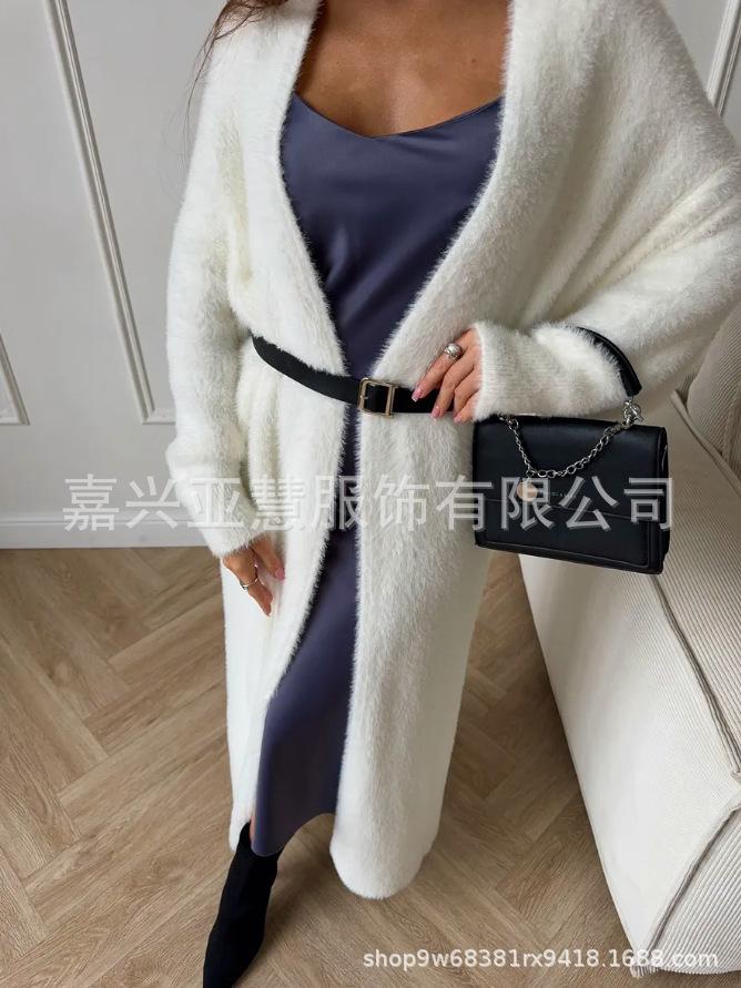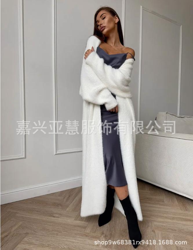Cardigan branco de vison sintético transfronteiriço para mulheres, outono inverno, solto, plus size, casaco felpudo de malha, roupa de exterior
