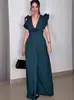 2025 Novo Macacão Europeu e Americano Casual Transfronteiriço Decote Quadrado Sem Mangas Bainha em Camadas Calças de Pernas Largas Amazon