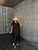 Novo Vestido de Malha Preta com Recortes Estilo Coreano Lino Xia para Mulheres 2025 Moda Versátil Casual Tendência de Saia Camiseta