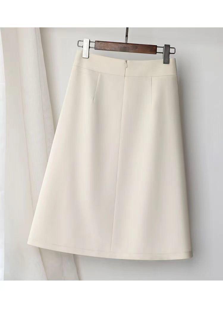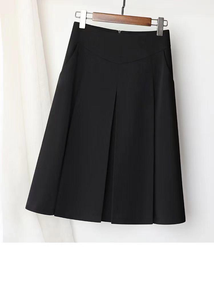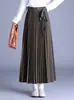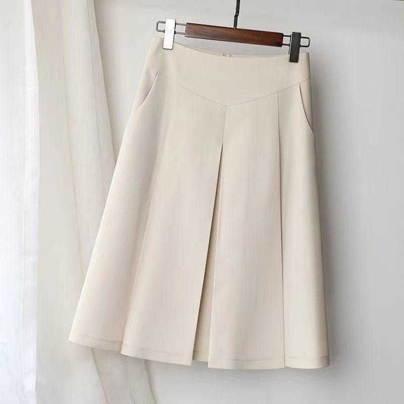 Saia Midi Cintura Alta Shanlida 2025 Primavera/Verão Nova Saia A-Line de Comprimento Médio Saia Plissada Saia Midi Emagrecedora Ocidental