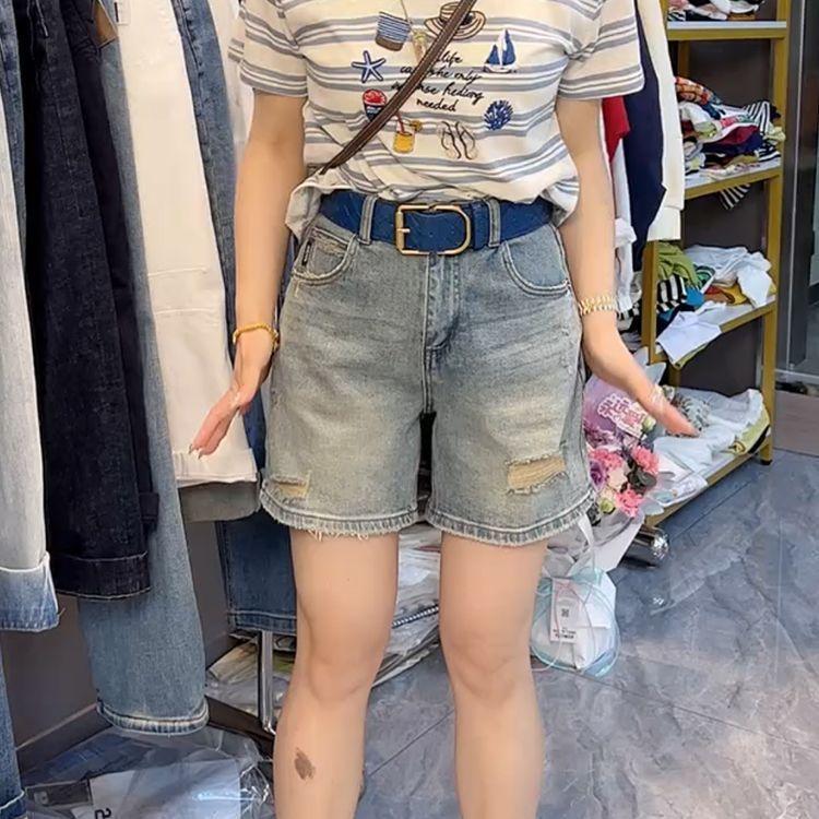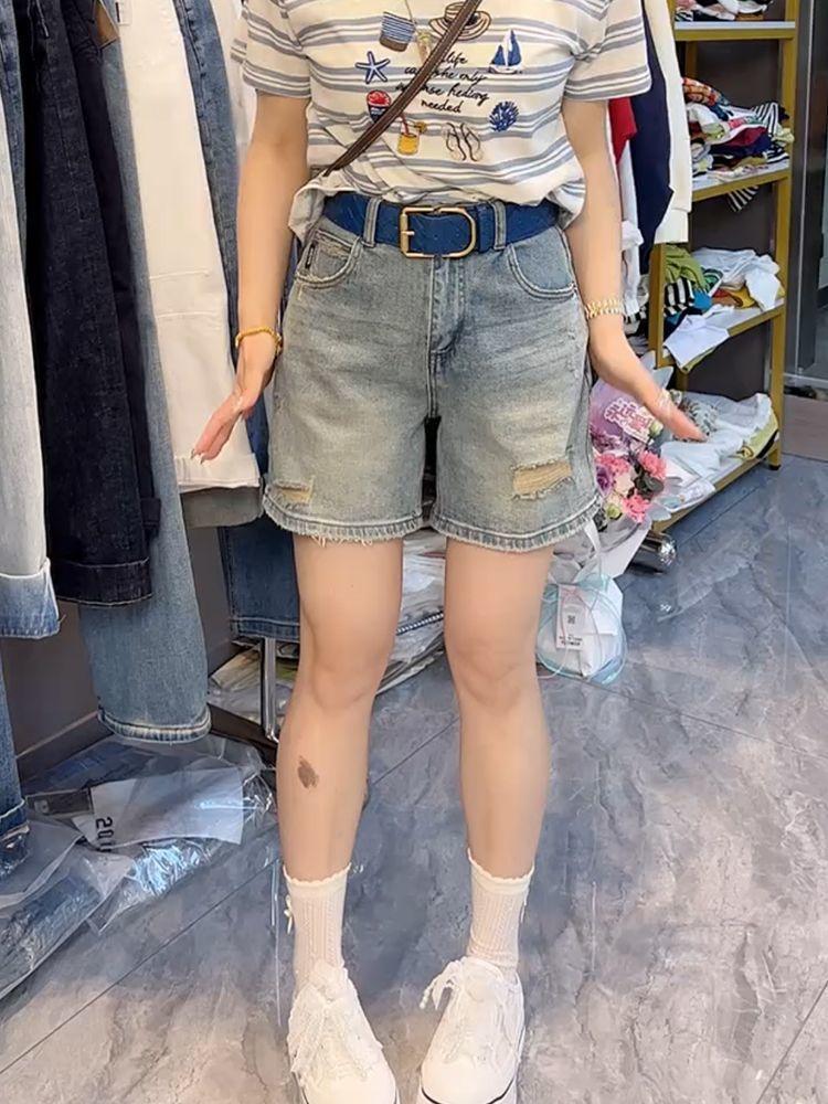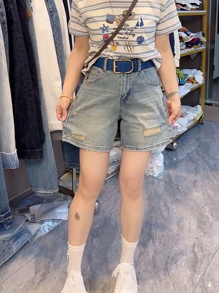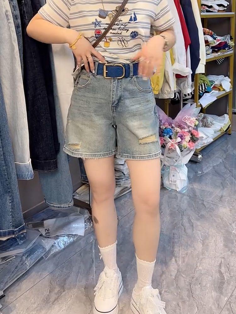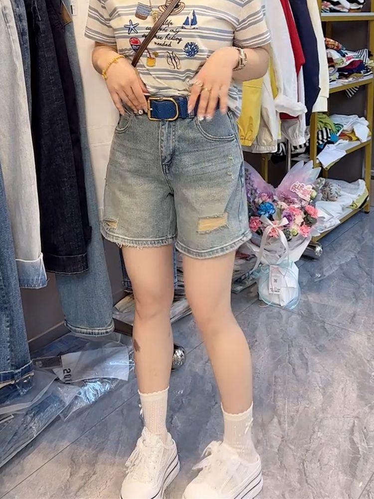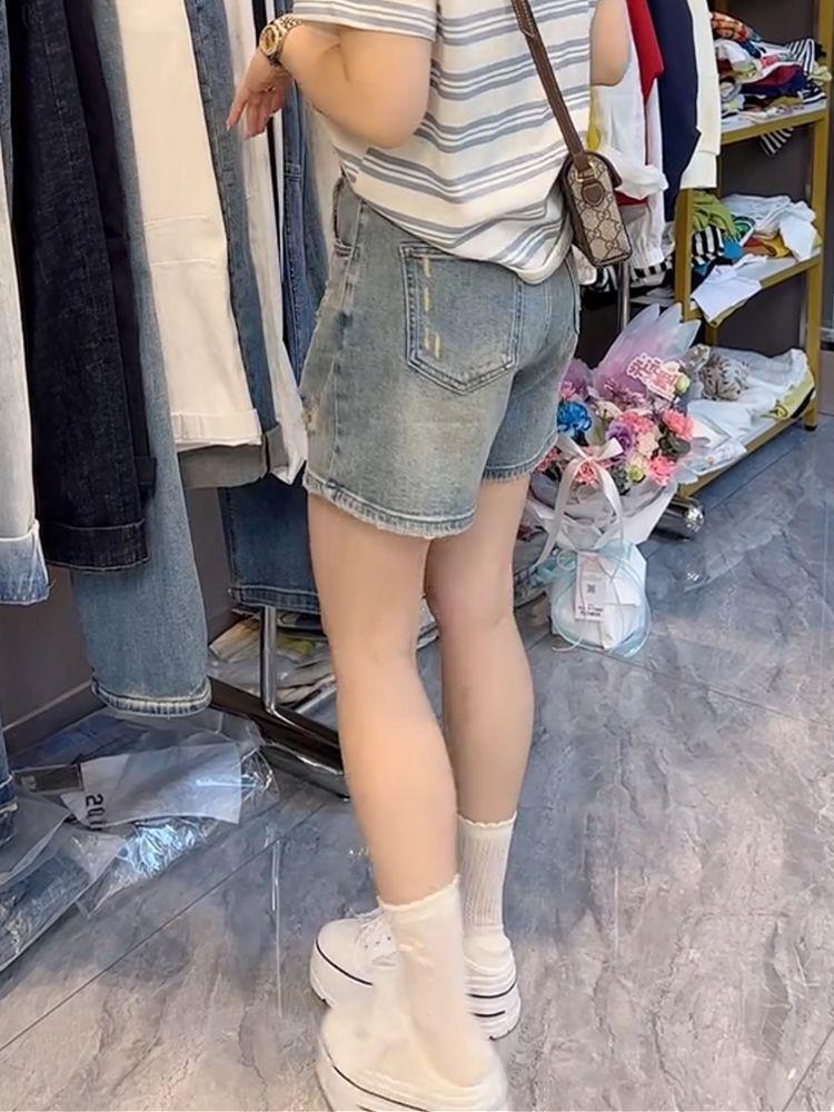 Verão Novo Rasgado Desfiado Shorts Jeans Mulher Plus Size Gordinha MM Cintura Alta Emagrecimento Retrô A-line Perna Larga Hot Pants Maré