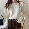 Suéter Casual de Cor Sólida Suave Pulôver Feminino Outono e Inverno Novo Estilo Coreano Borda Ondulada Gola Redonda Versátil Camisa Base Tricotada
