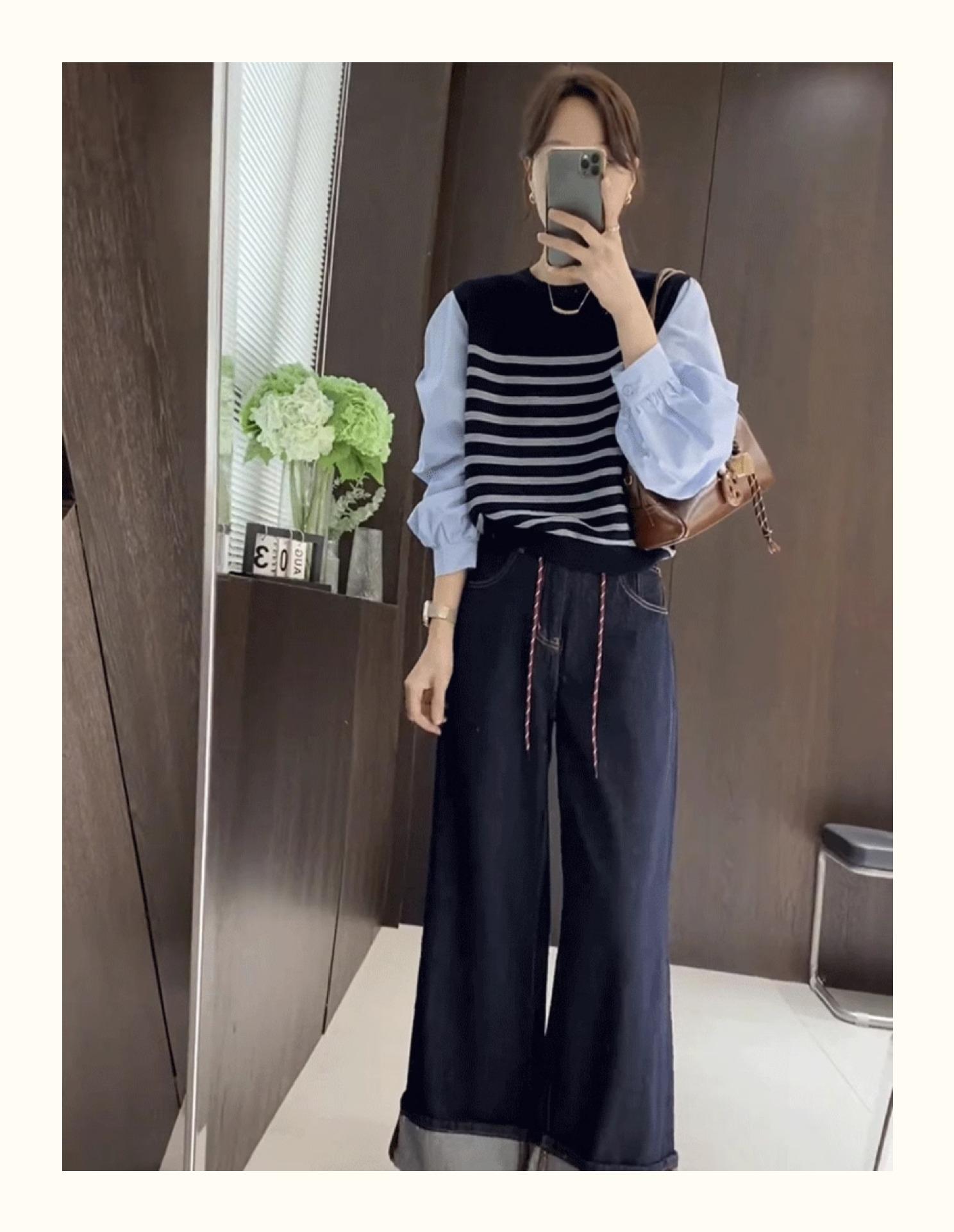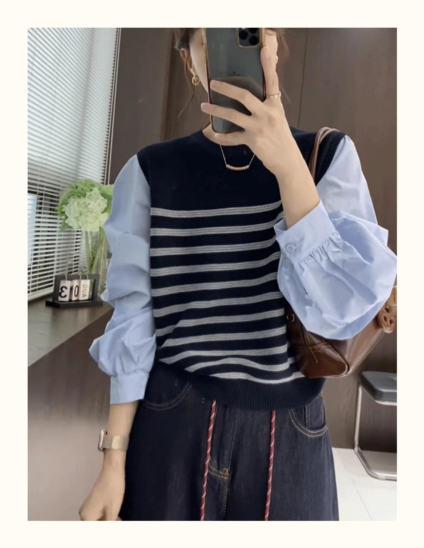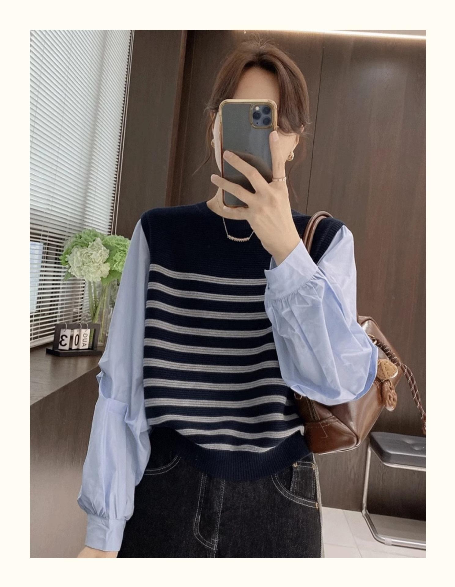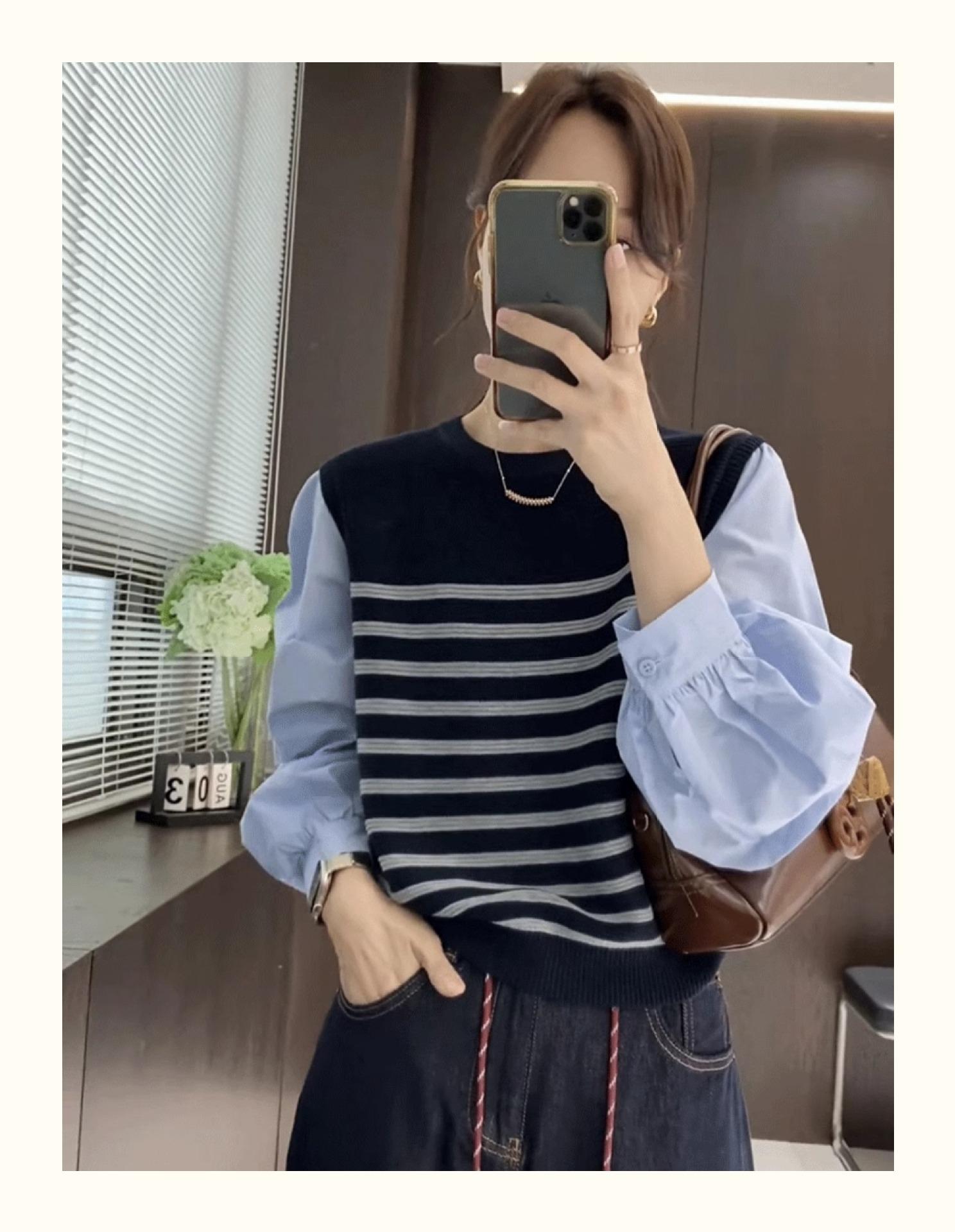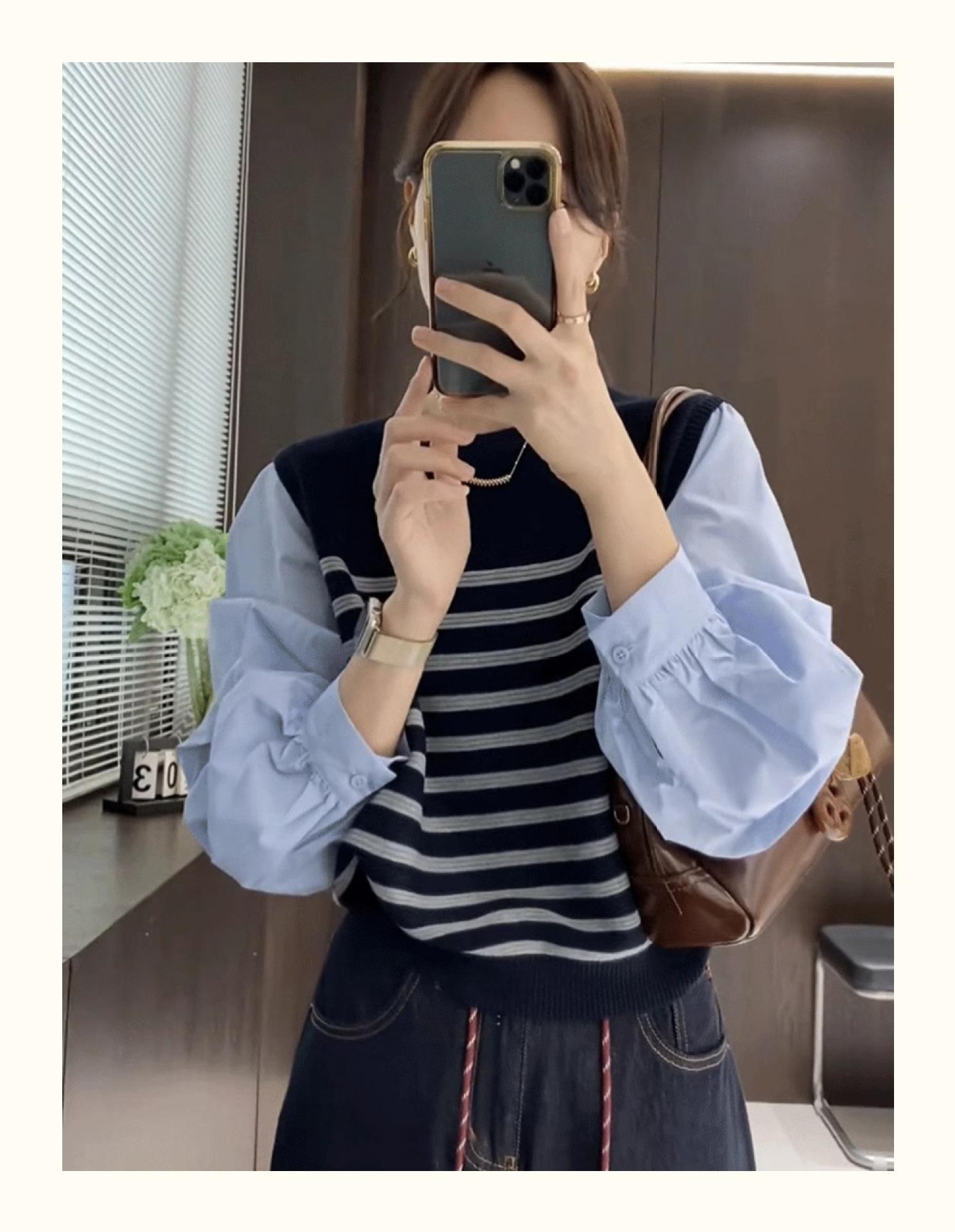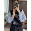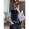 Colete de malha listrado temperamento elegante roupa combinando confortável malharia listrada pulôver colete suéter A6167