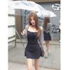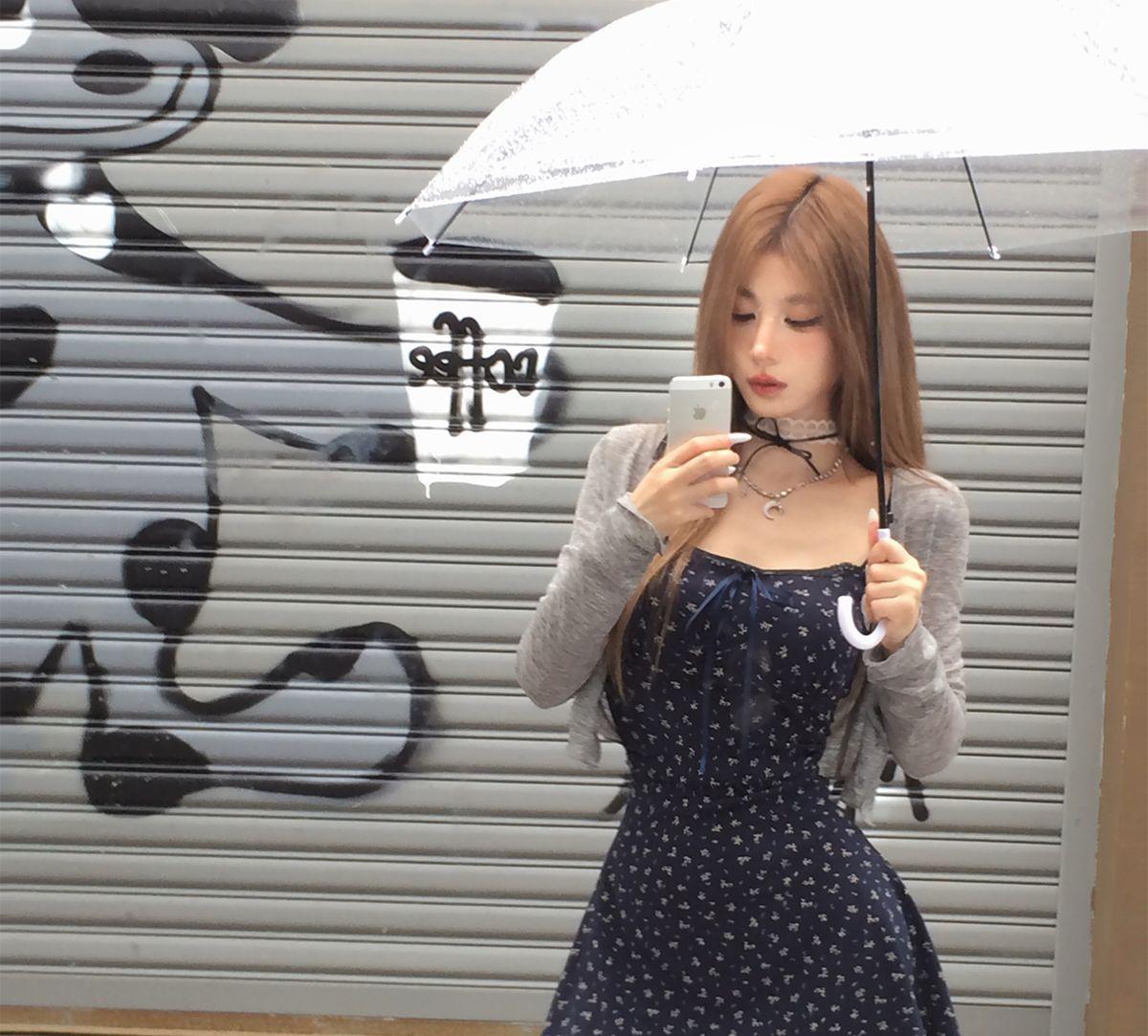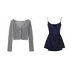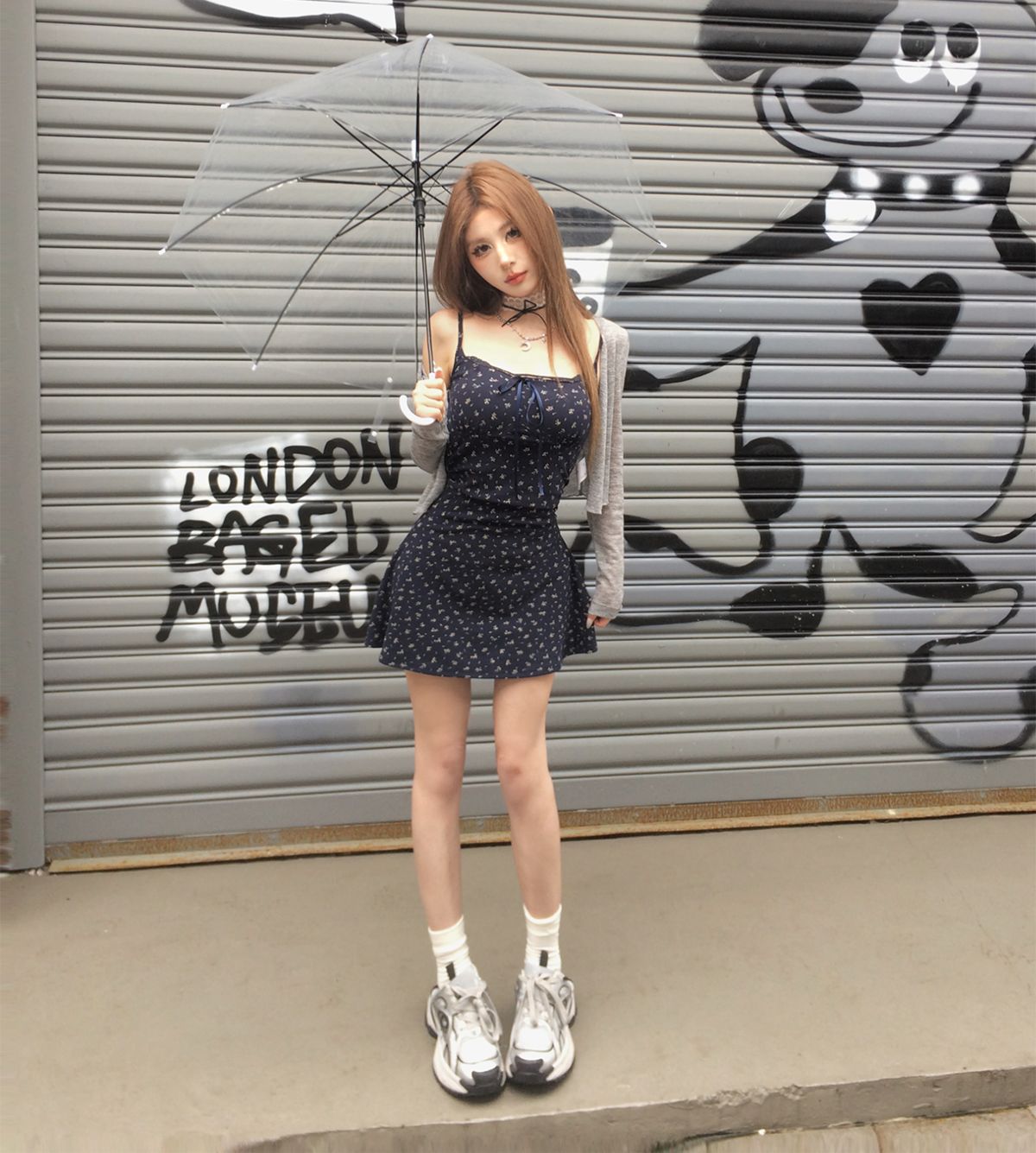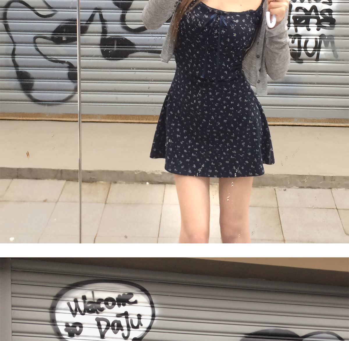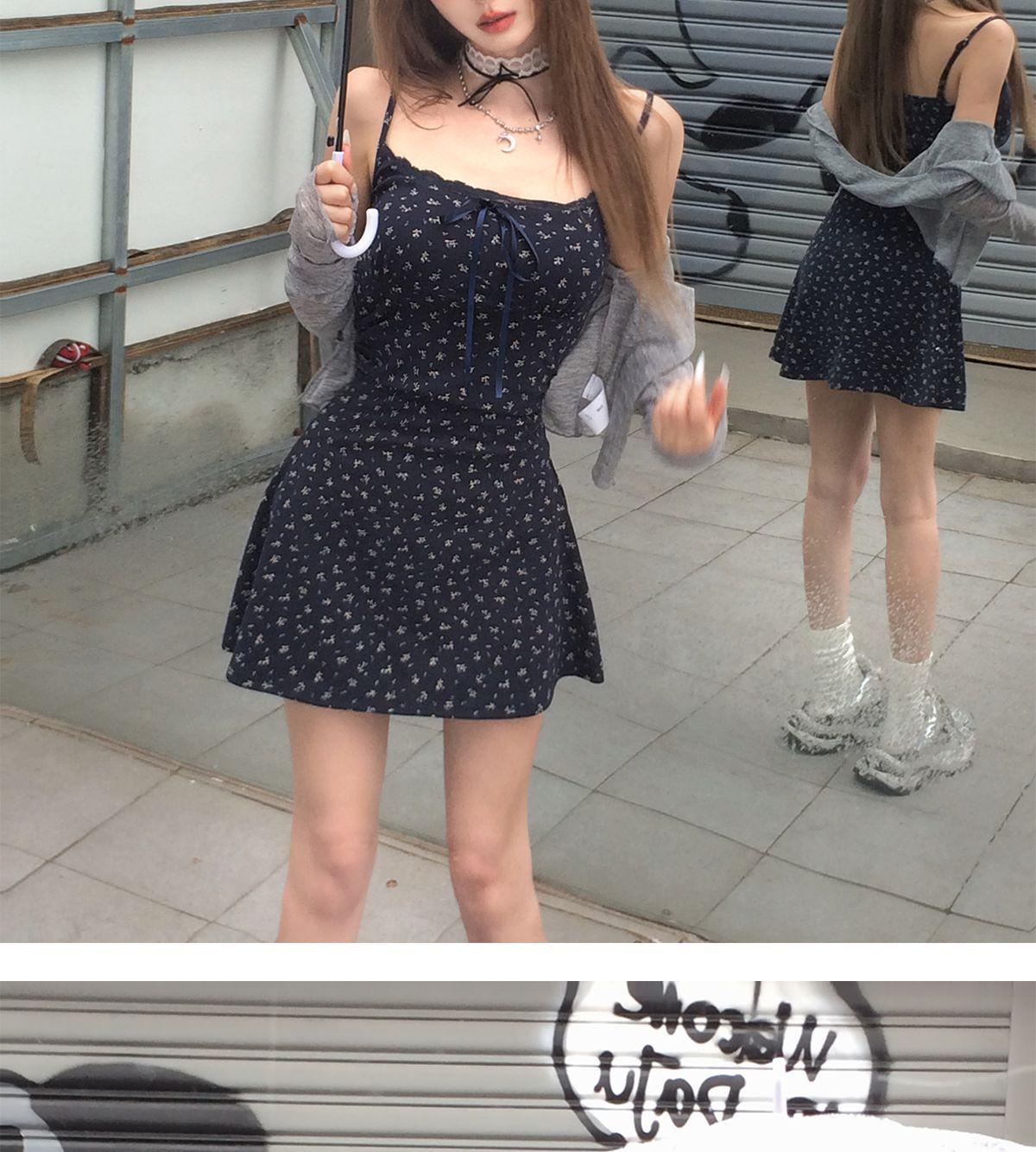Vestido Estampado Floral Jardim Beihai Alça Espaguete Cardigã Versátil Sense de Design de Garota Doce e Apimentada Retrô Francês