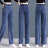Calças Jeans Femininas de Perna Reta, Primavera e Verão Novo Solto Cintura Alta Emagrecimento Calças Stretch para Mães de Meia Idade