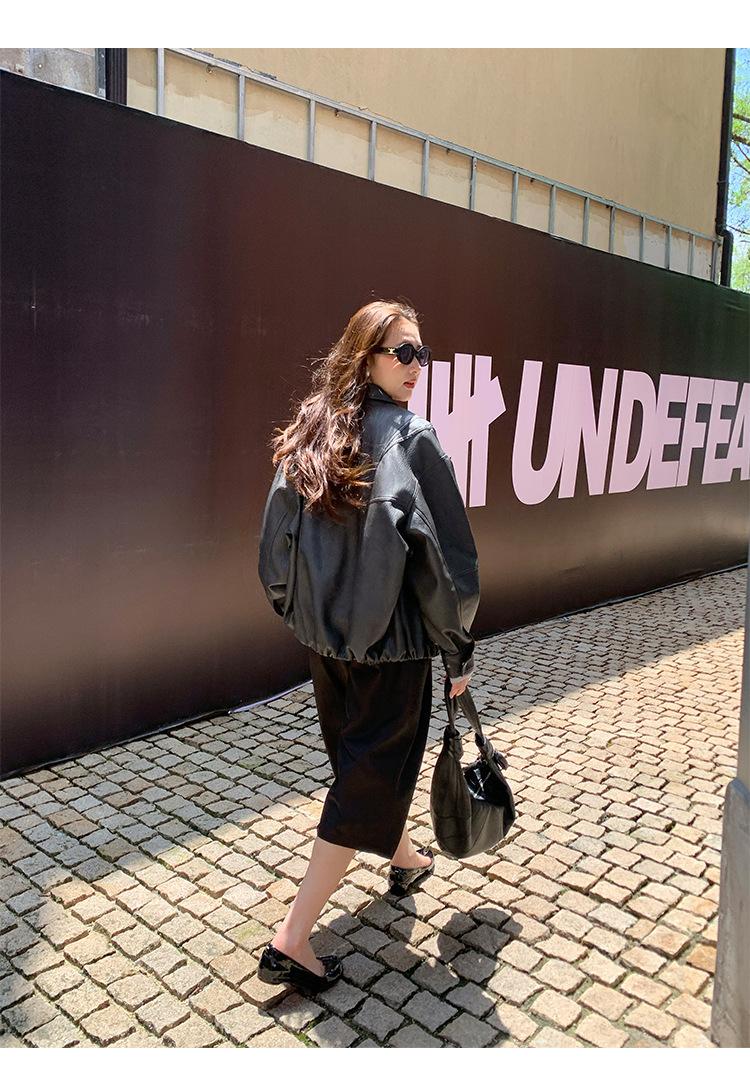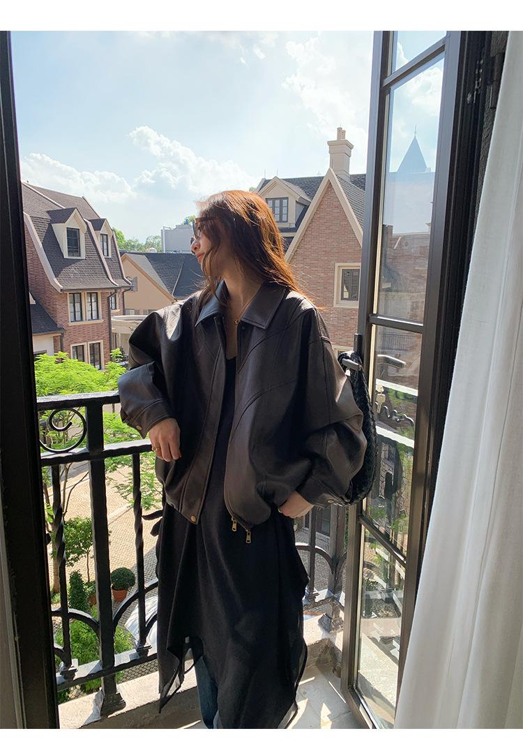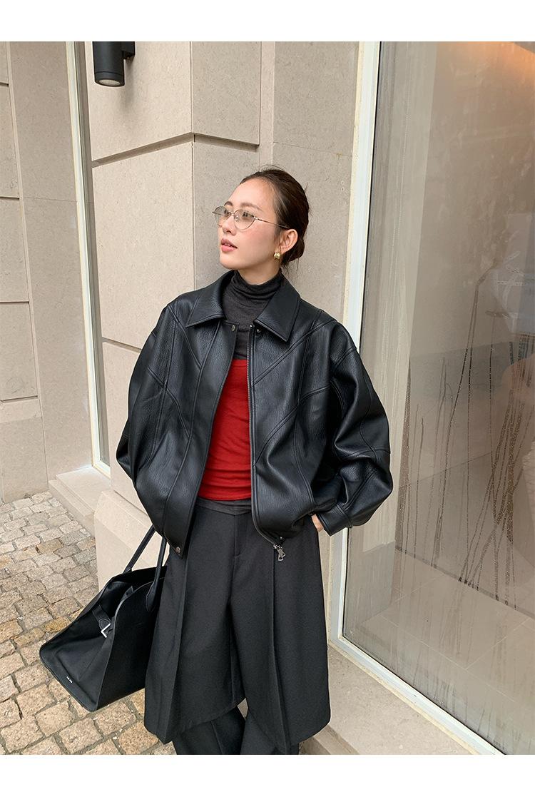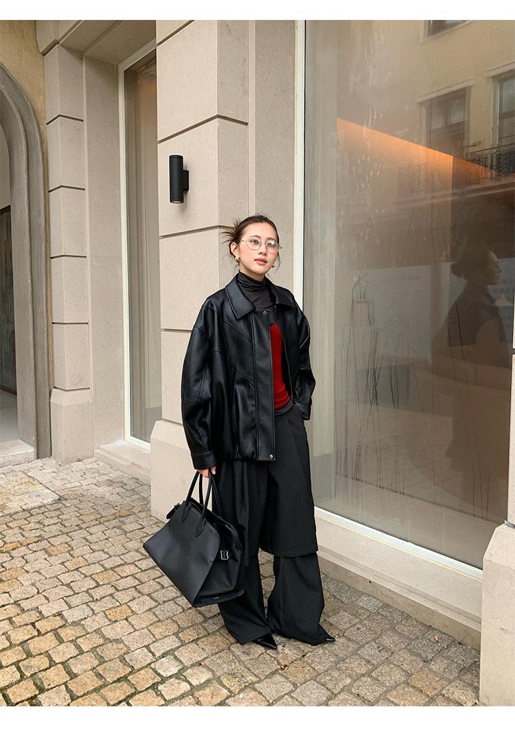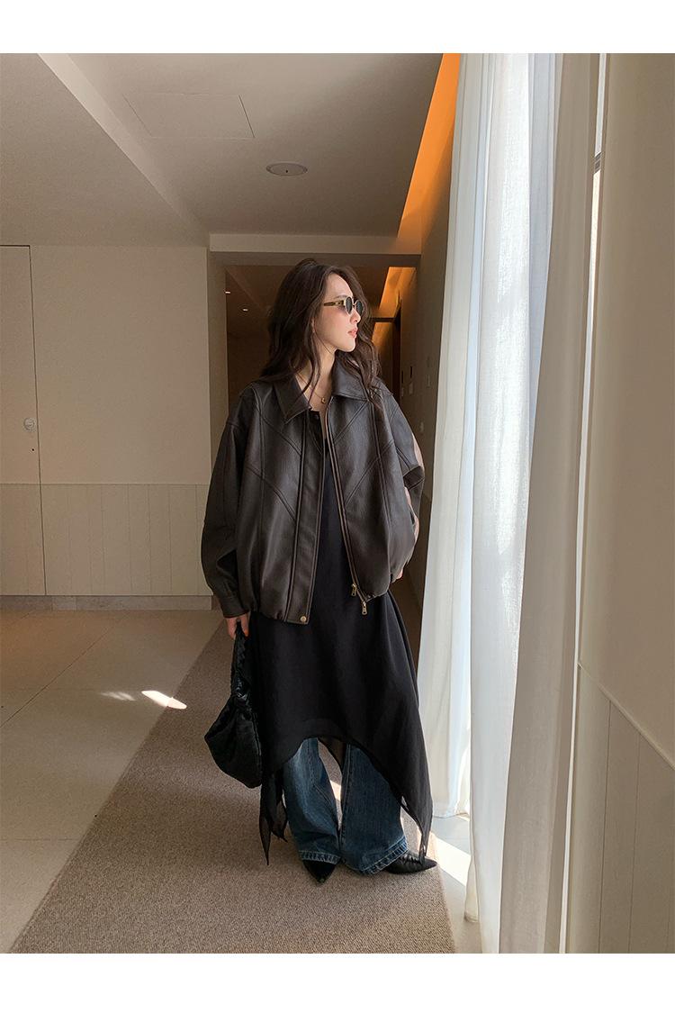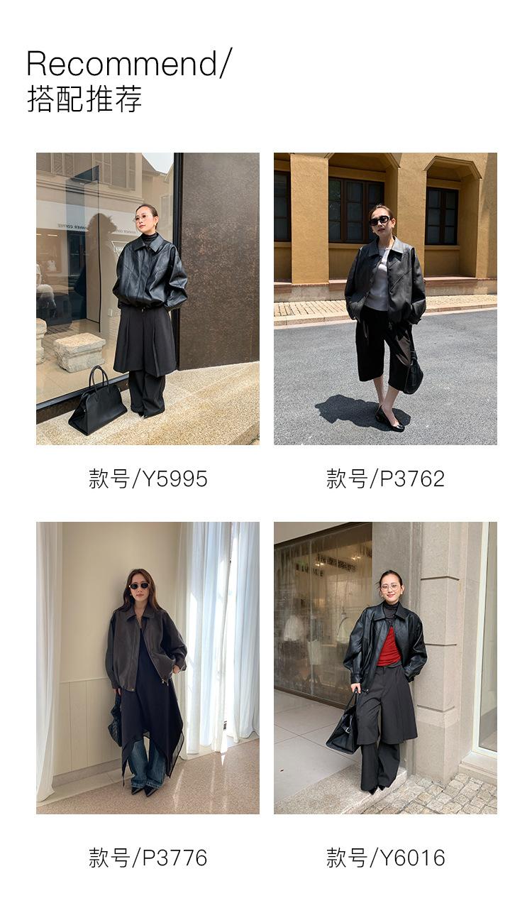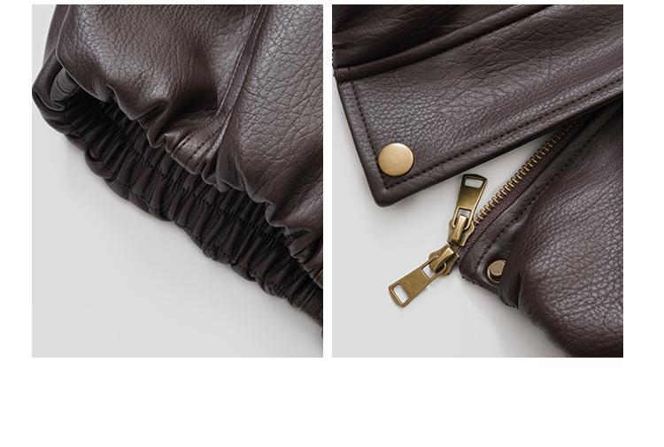Jaqueta de Couro Motocicleta Retrô Wanwei Feminina 2025 Outono Novo Lapela Bainha Elástica PU Jaqueta de Couro Casaco P3724