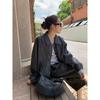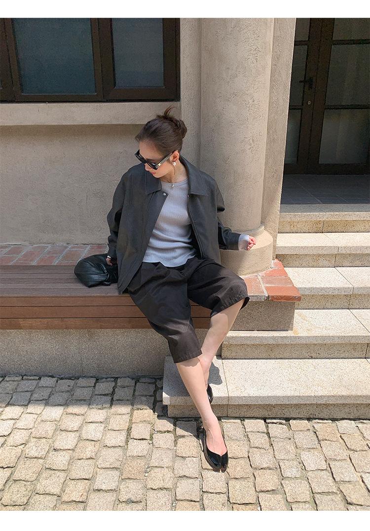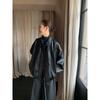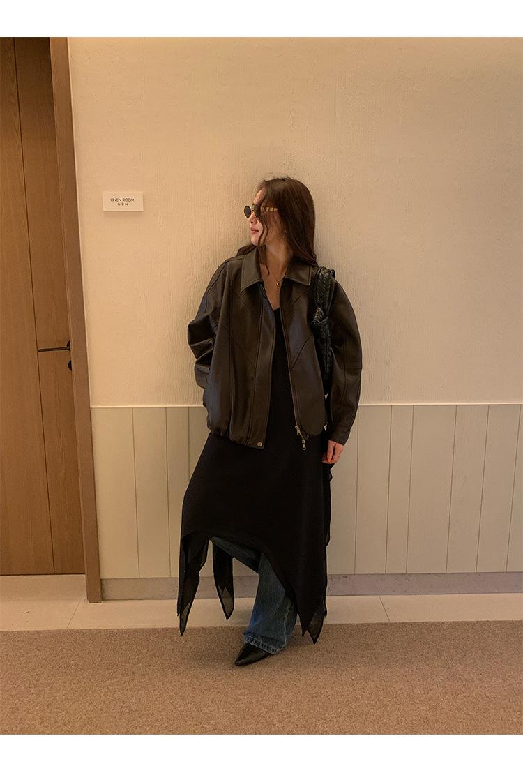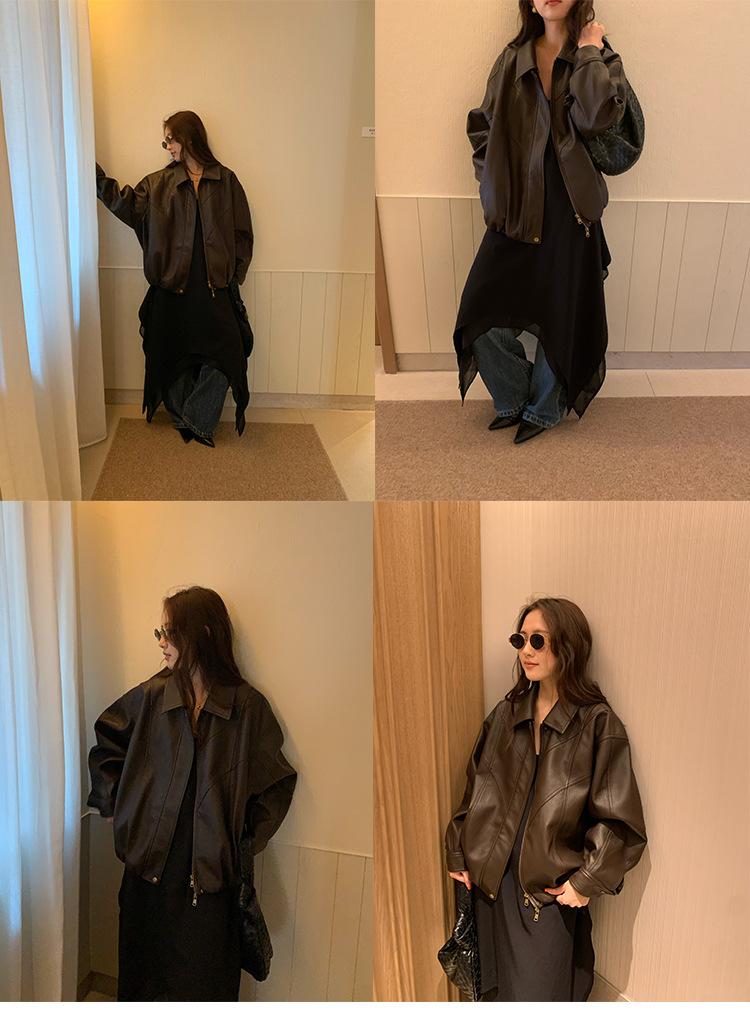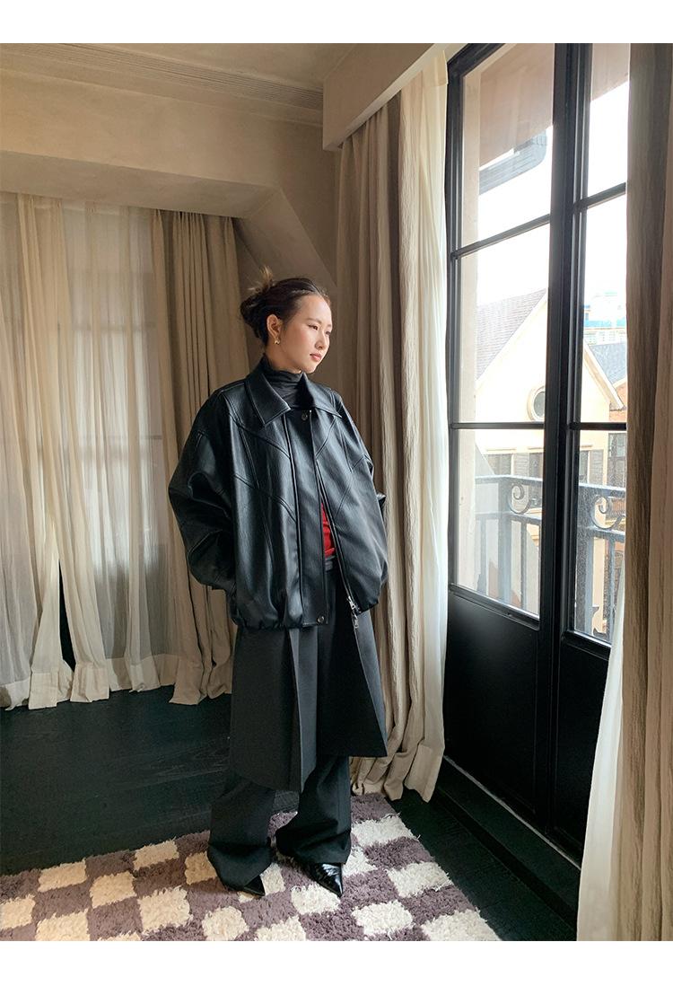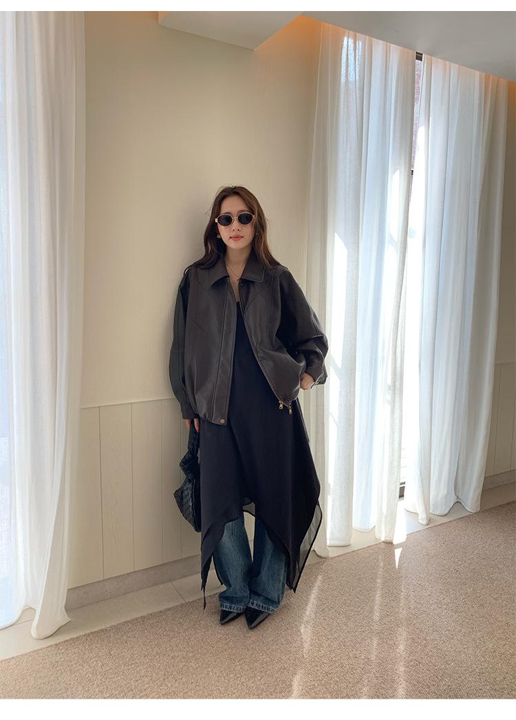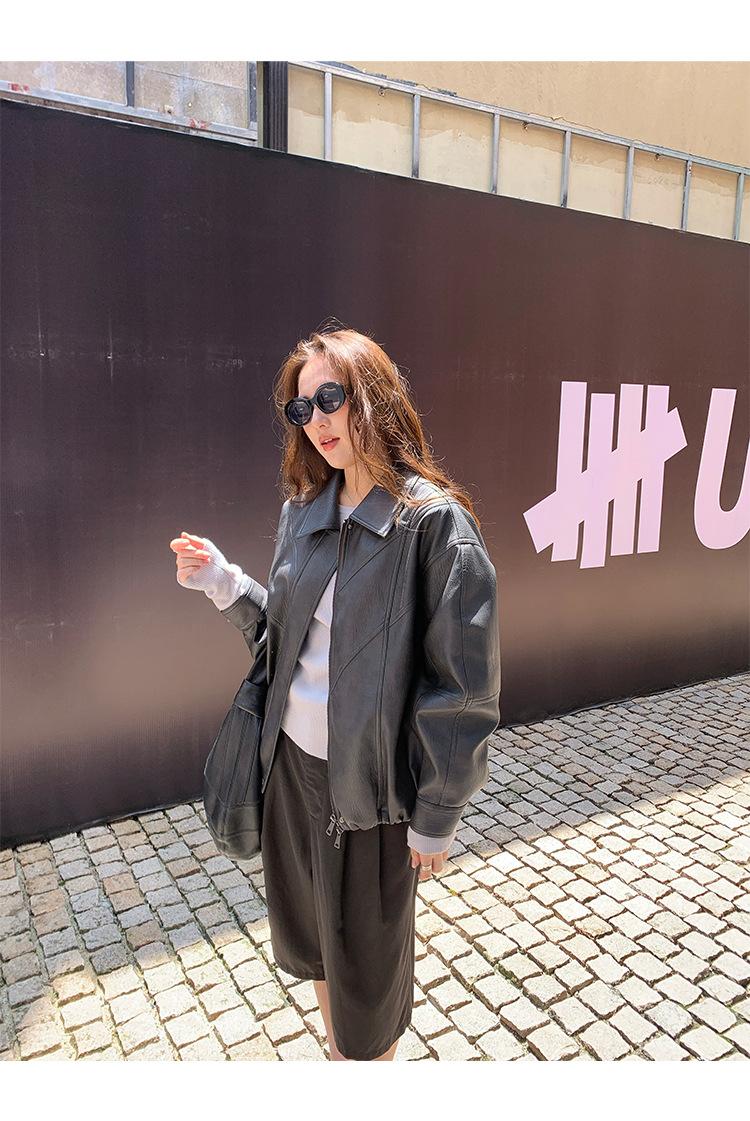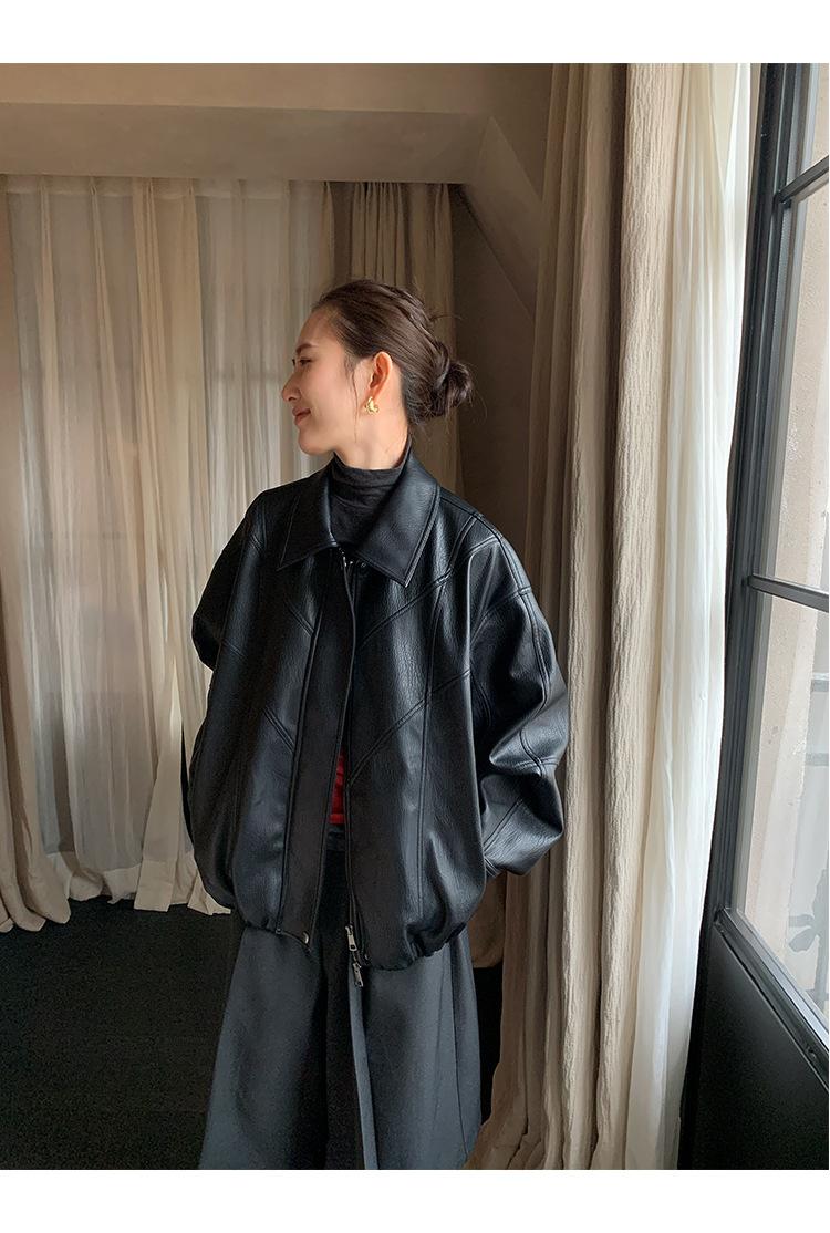 Jaqueta de Couro Motocicleta Retrô Wanwei Feminina 2025 Outono Novo Lapela Bainha Elástica PU Jaqueta de Couro Casaco P3724