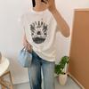Estilo Casual Retrô Americano Estilo Ins Estampada 2025 Verão Novo Estilo Camiseta de Manga Curta 100% Algodão Roupa de Trabalho Top