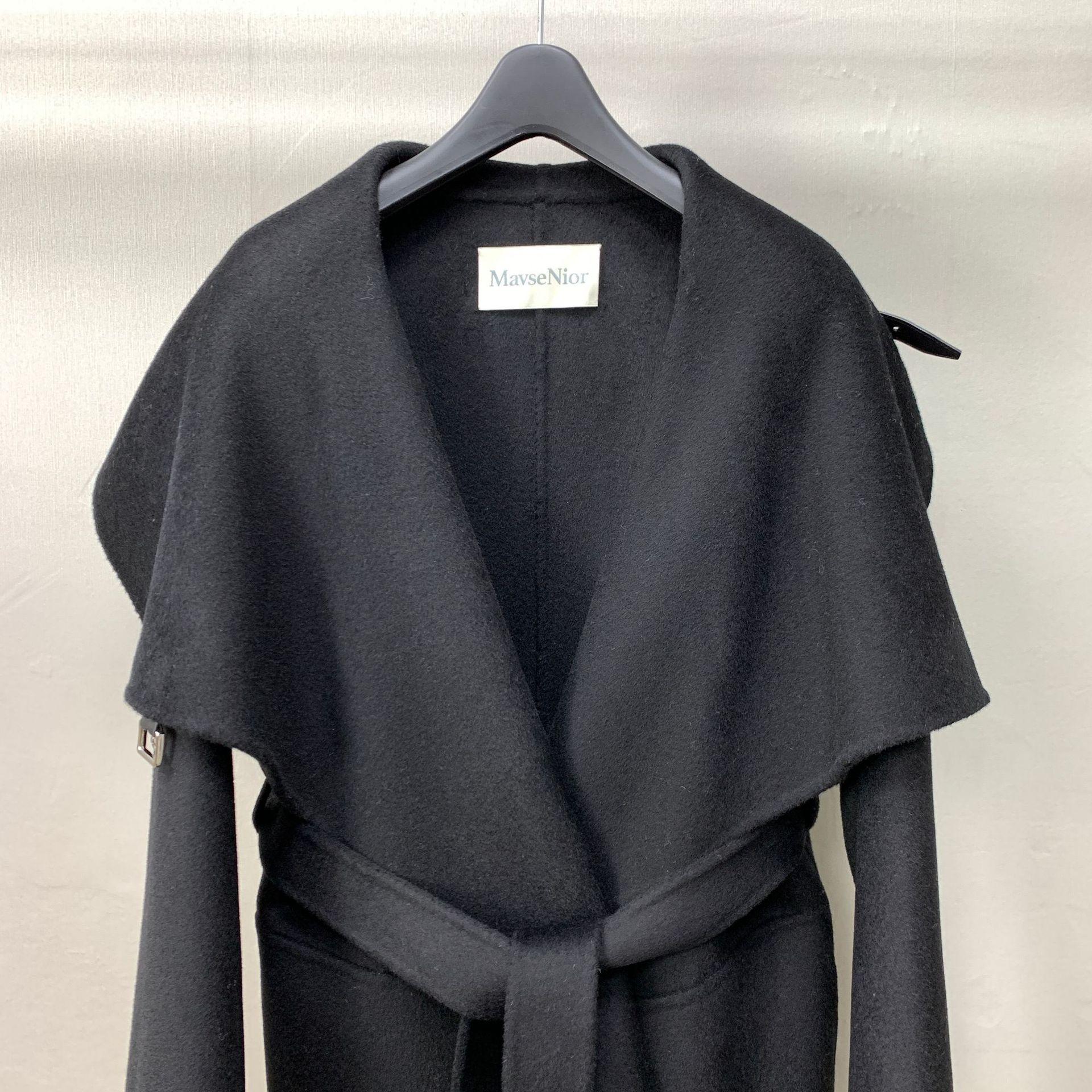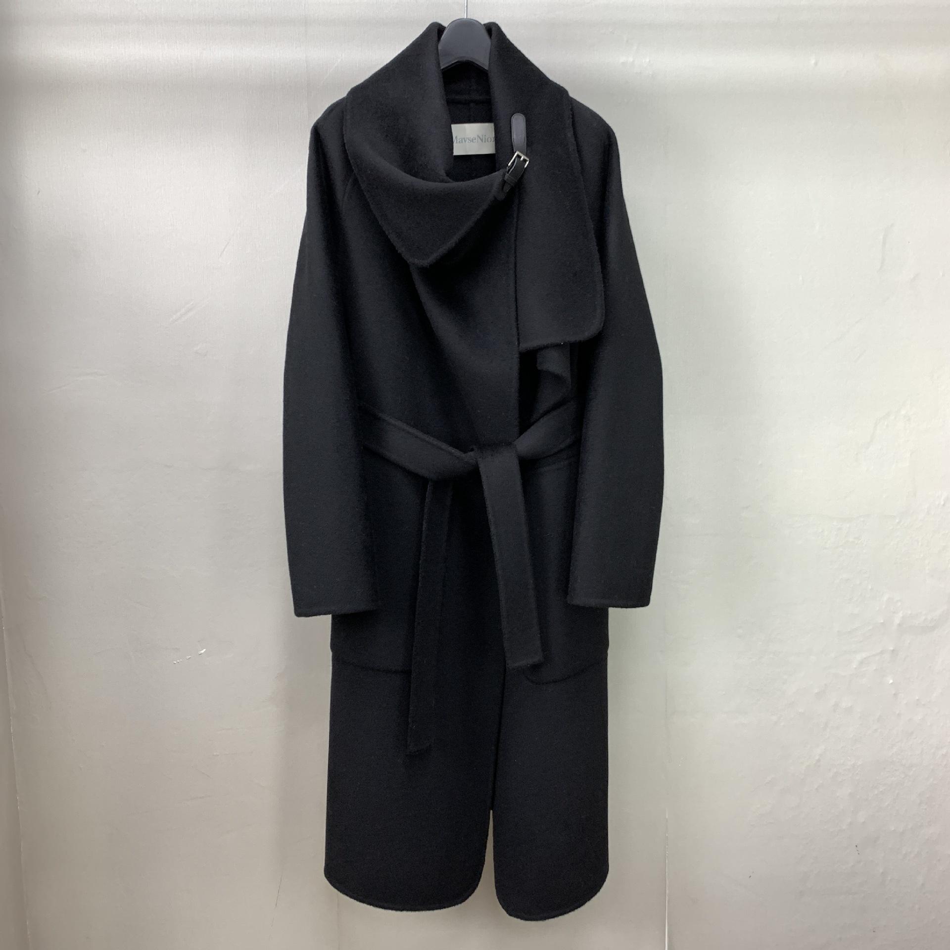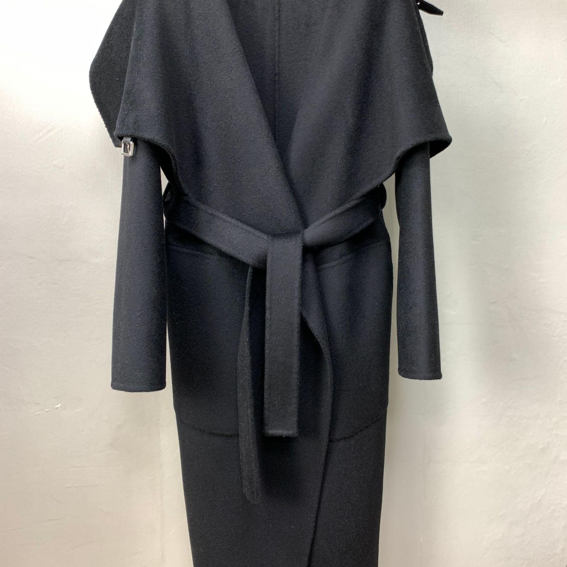Casaco Longo de Lã Dupla Face Estilo Capa com Fivela de Couro e Lapela Grande Outono Inverno Estilo Temperamento Europeu Americano