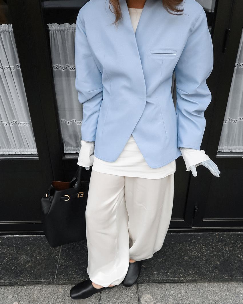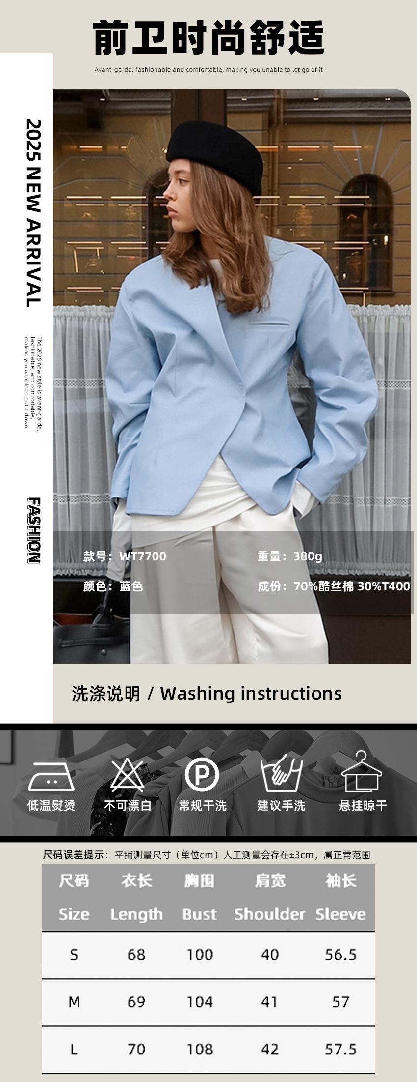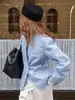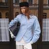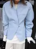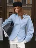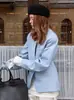 Blazer Casual Azul de Rua Europeu e Americano para Mulheres 2025 Design de Outono Jaqueta Solta de Manga Comprida Top Roupas Femininas