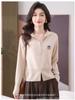 Jaqueta Casaco Novo 2025 Feminino Primavera Outono Moda Casual Solto Cardigan de Tricô Suéter Gola Redonda Casaco com Lapela
