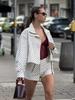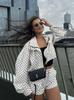 Roupas femininas de comércio exterior transfronteiriço outono 2025 estilo europeu e americano gola alta manga longa color-block bolinhas jaqueta casaco feminino B88865