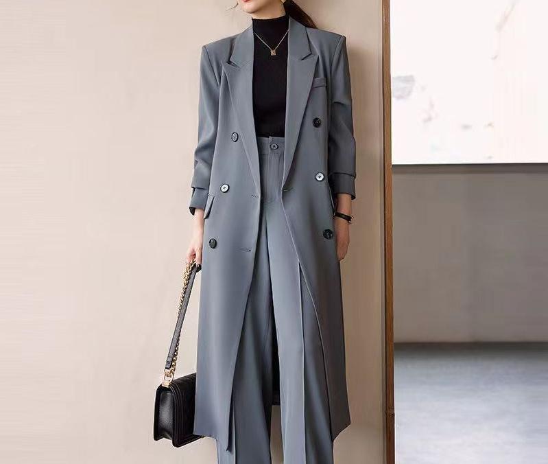 Casaco verde feminino primavera e outono petite corta-vento trespassado temperamento cor sólida clássico comprimento médio casaco de terno britânico