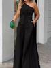 Primavera e verão 2024 gola oblíqua cadarço de um lado irregular ombro de fora cintura alta bolso calças de perna larga macacão casual