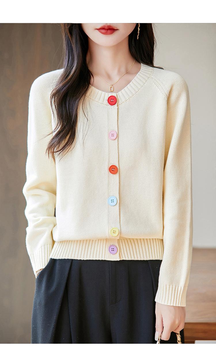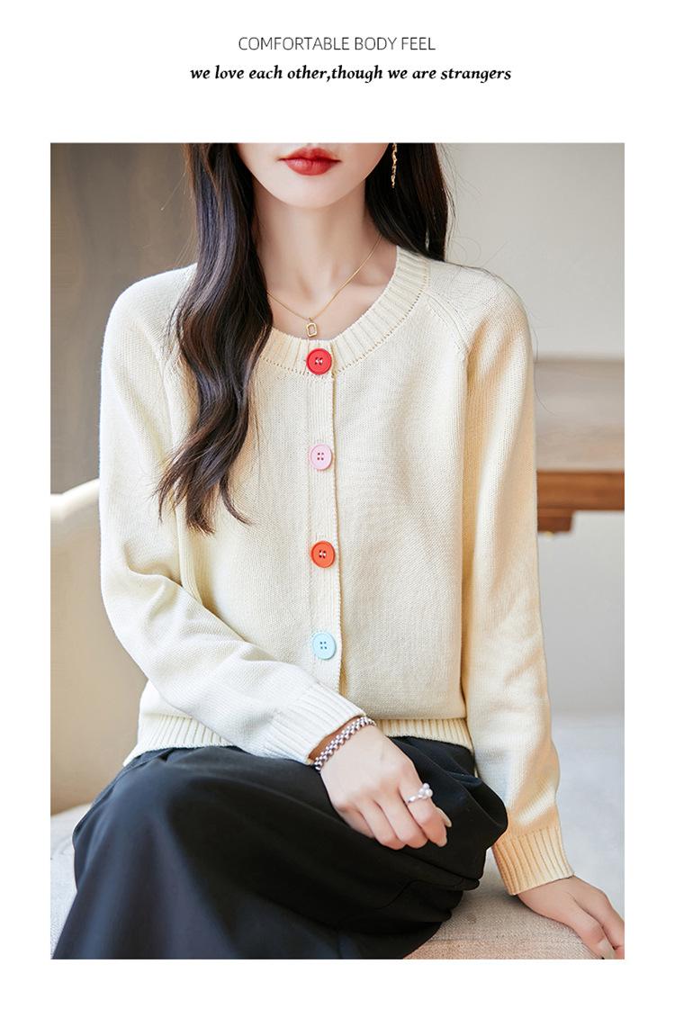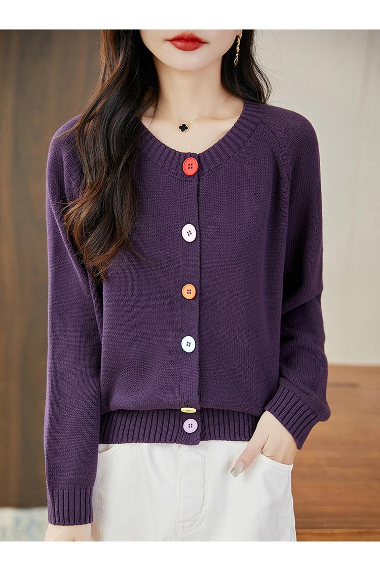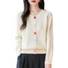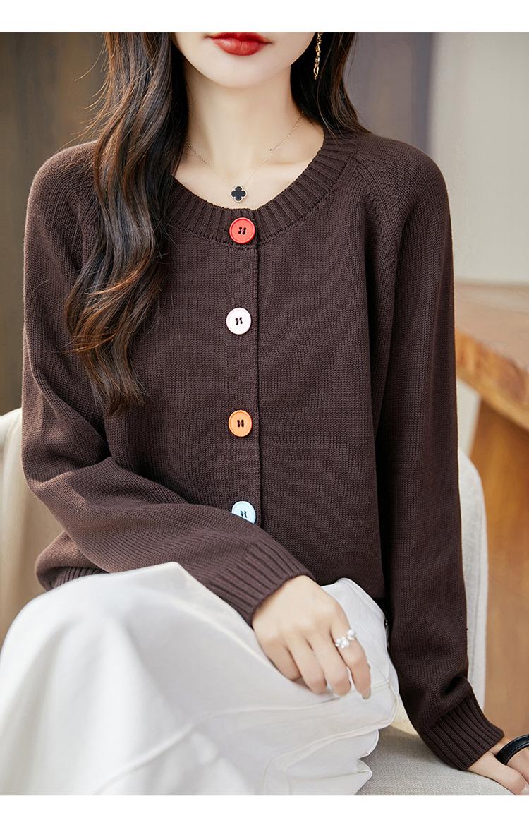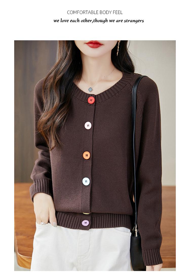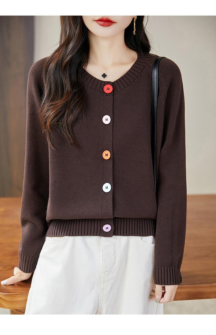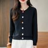 Cardigan de Tricô de Algodão Puro Gola Redonda Manga Longa Feminino Cor Sólida Botão Solto Versátil Top Roupa Exterior