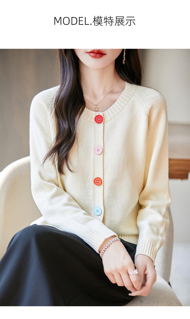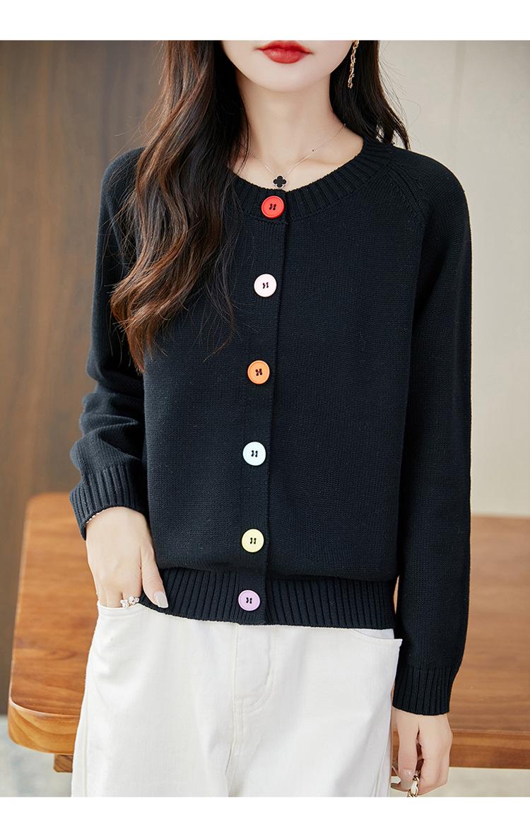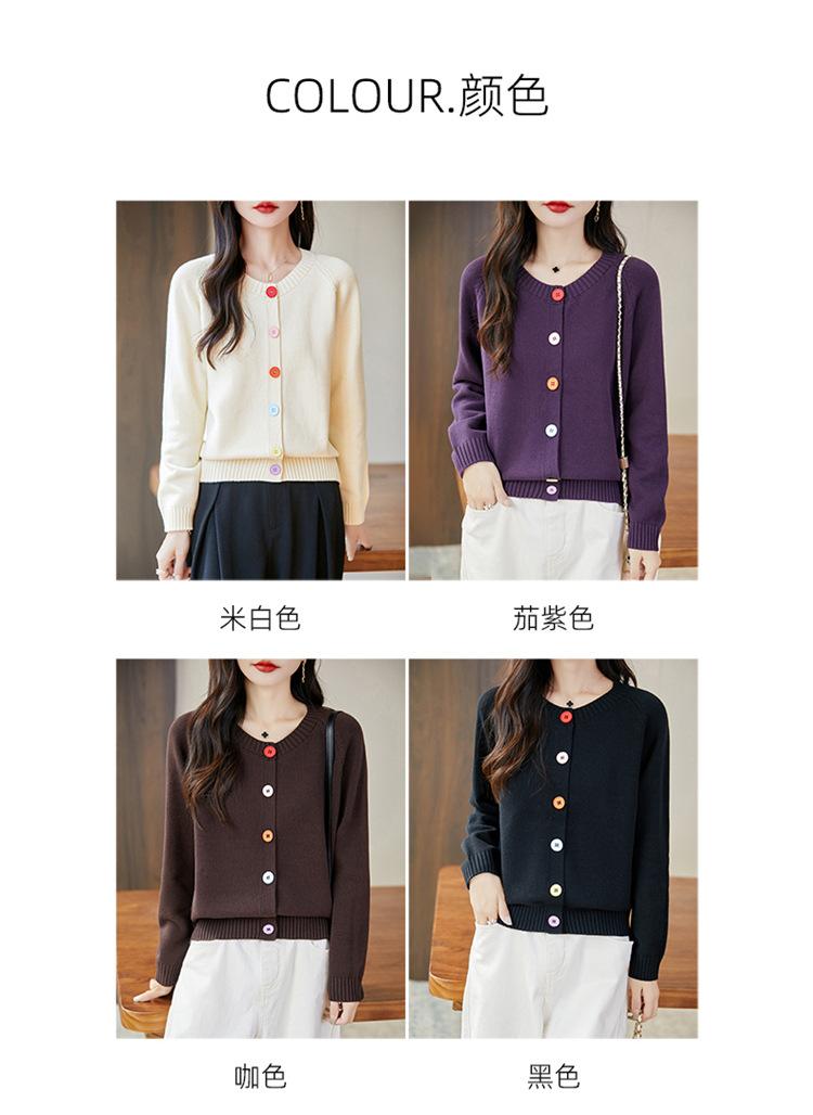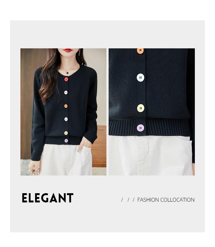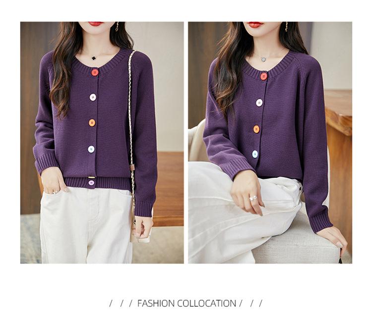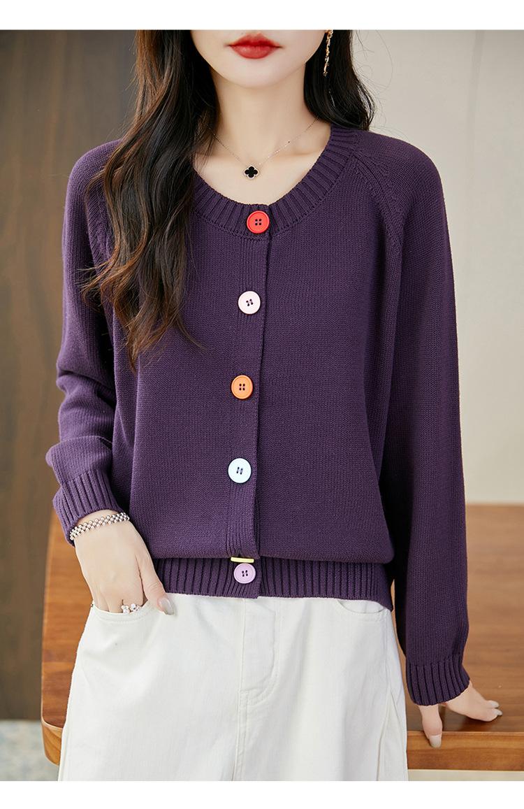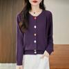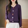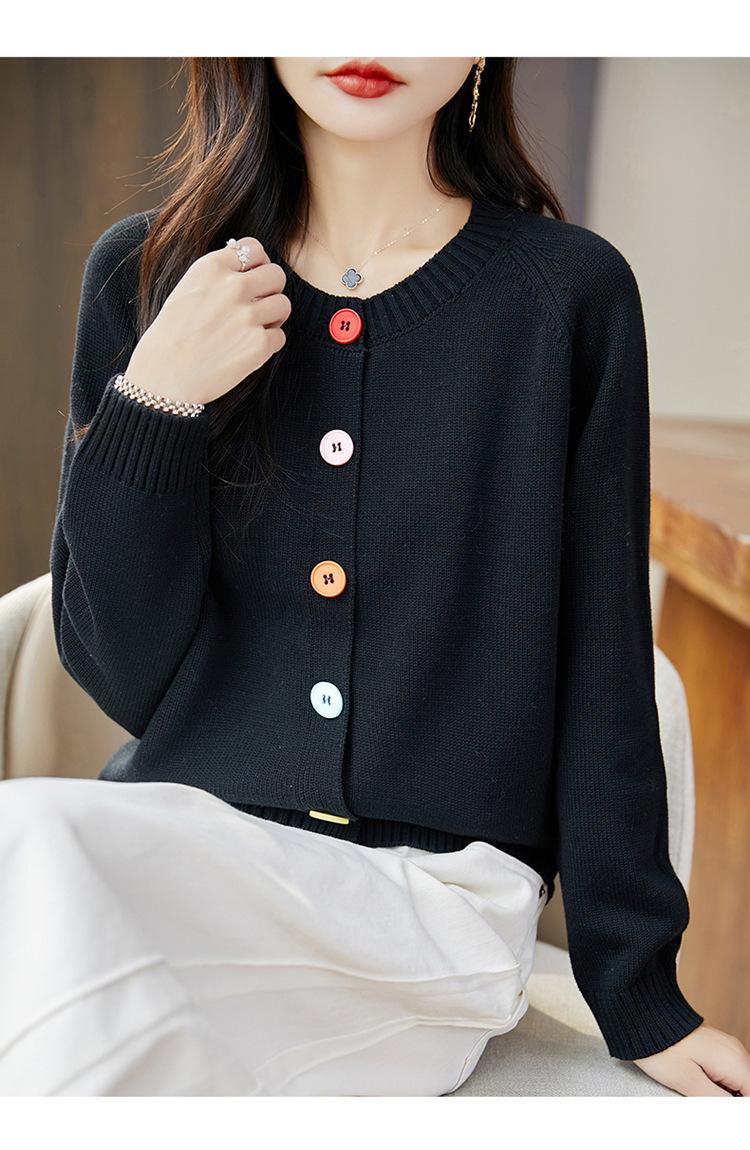 Cardigan de Tricô de Algodão Puro Gola Redonda Manga Longa Feminino Cor Sólida Botão Solto Versátil Top Roupa Exterior