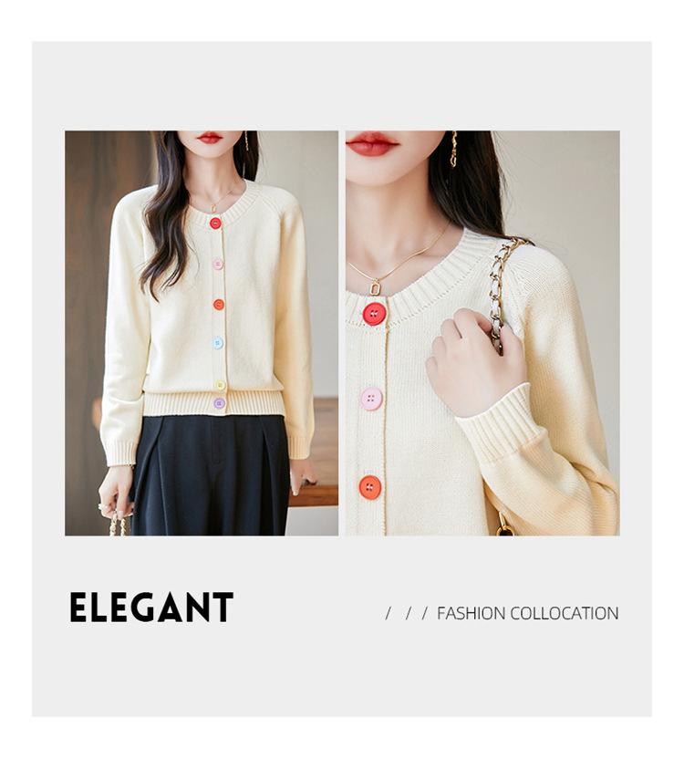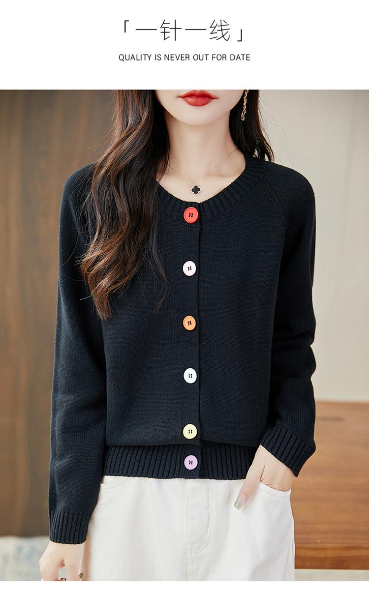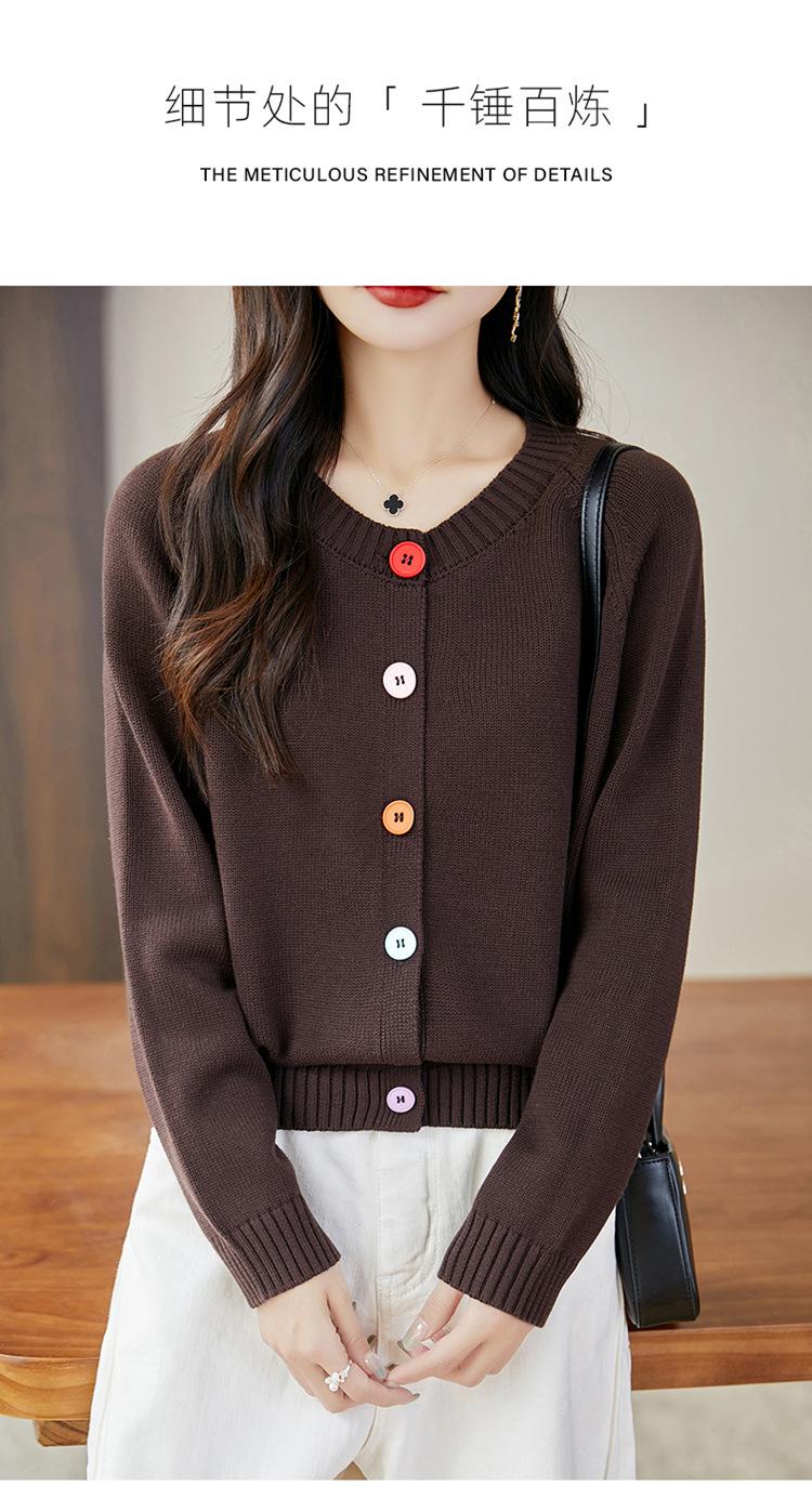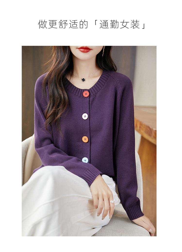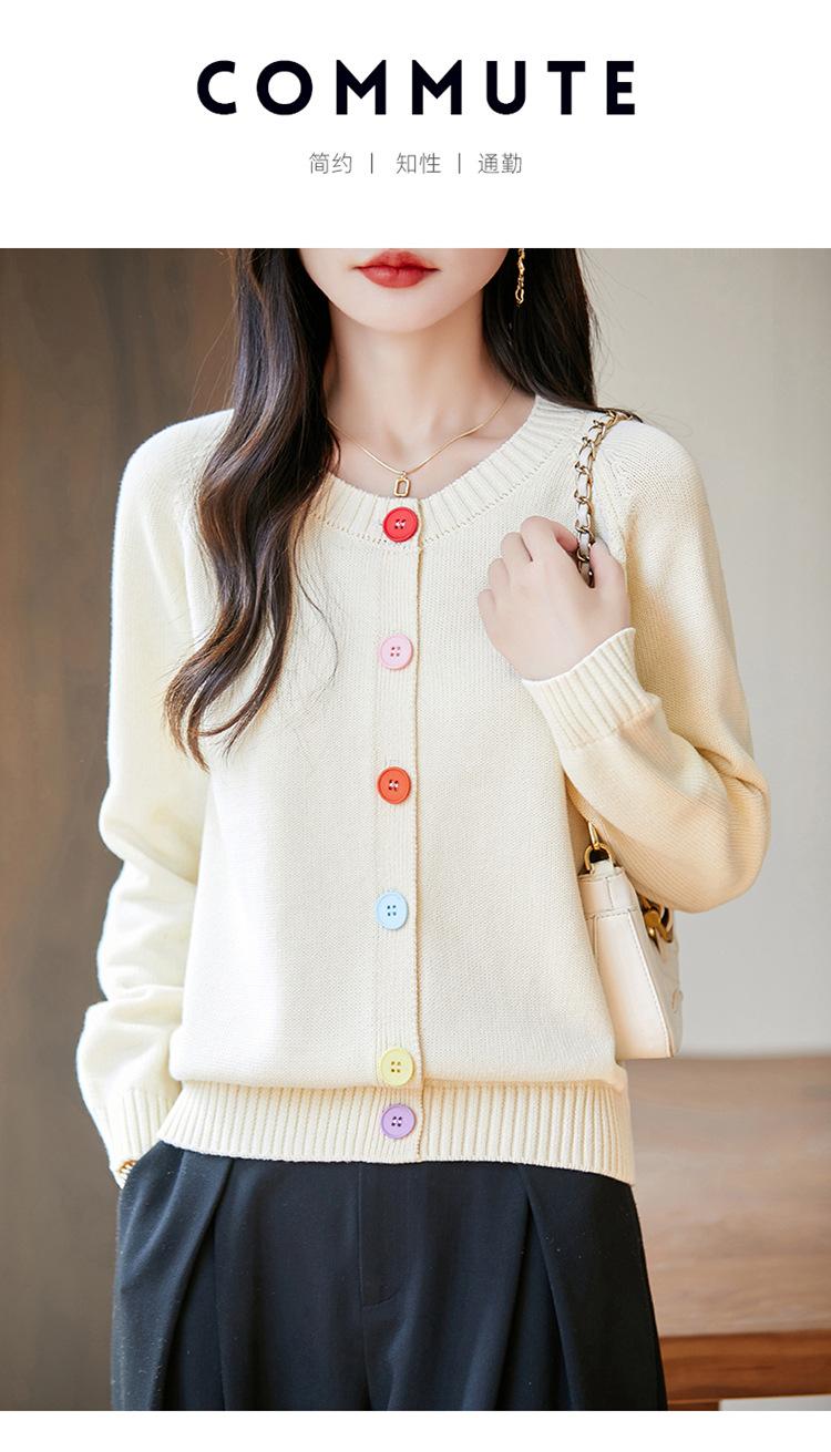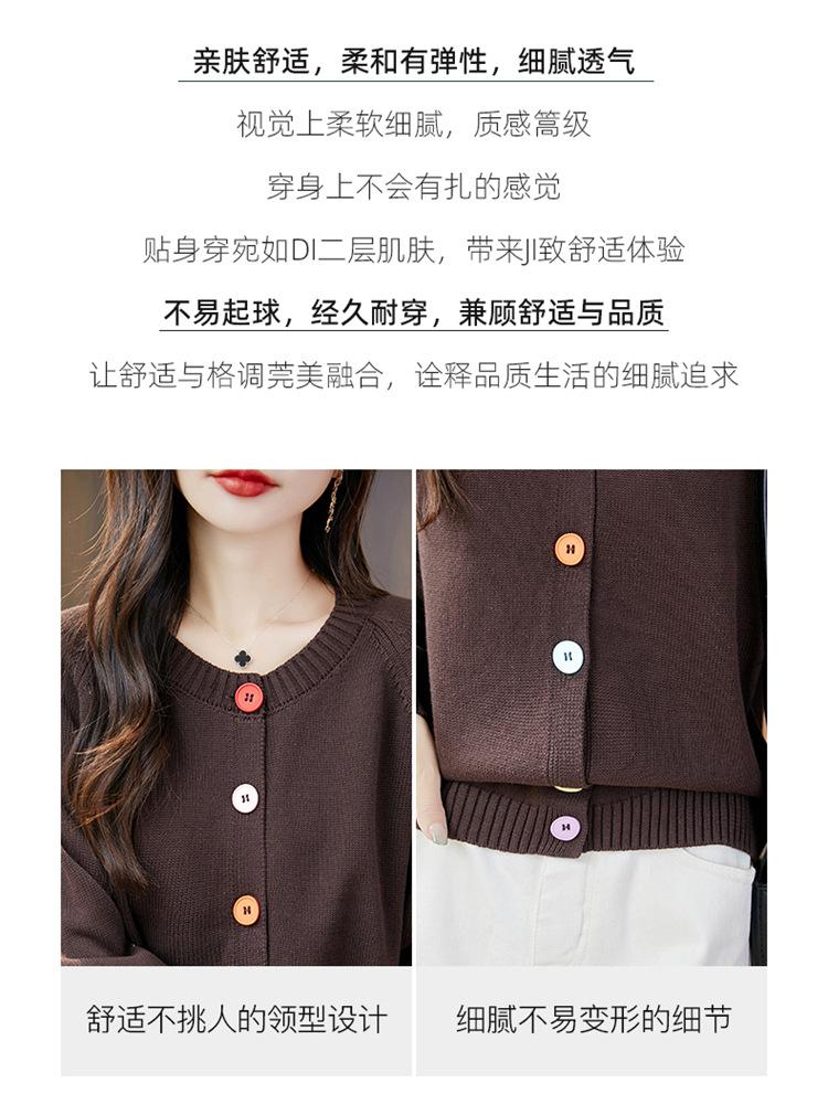 Cardigan de Tricô de Algodão Puro Gola Redonda Manga Longa Feminino Cor Sólida Botão Solto Versátil Top Roupa Exterior